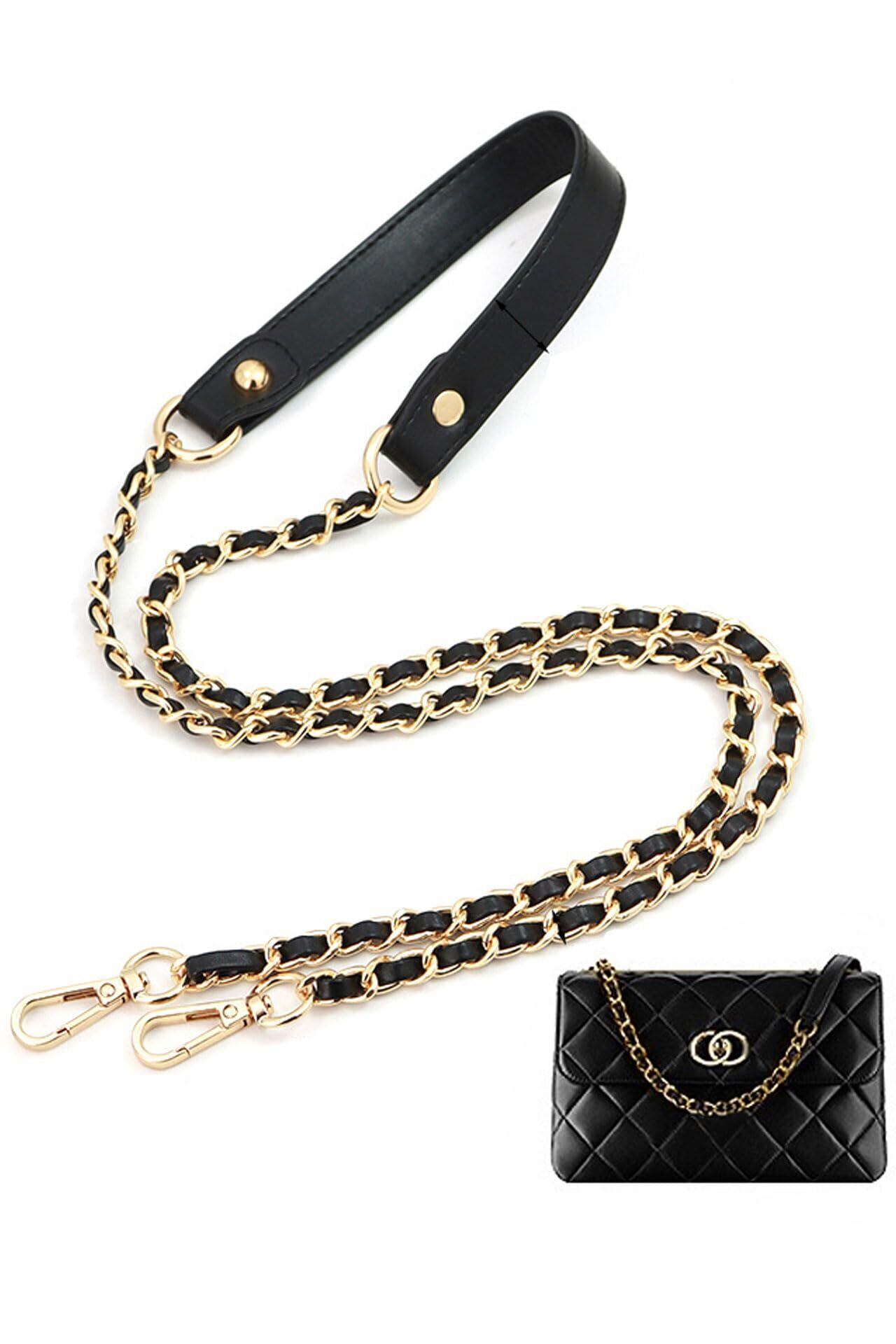 [VEAGIA] ショルダースト ショルダーストラップ バッグ用 チェーンショルダーストラップ ショルダーバッグ ひも バッグ修理 交換用 持ち手ストラップ ショルダースト 単品 ラップ バッグ用 約120cm (レザー(一部) 黒+金)