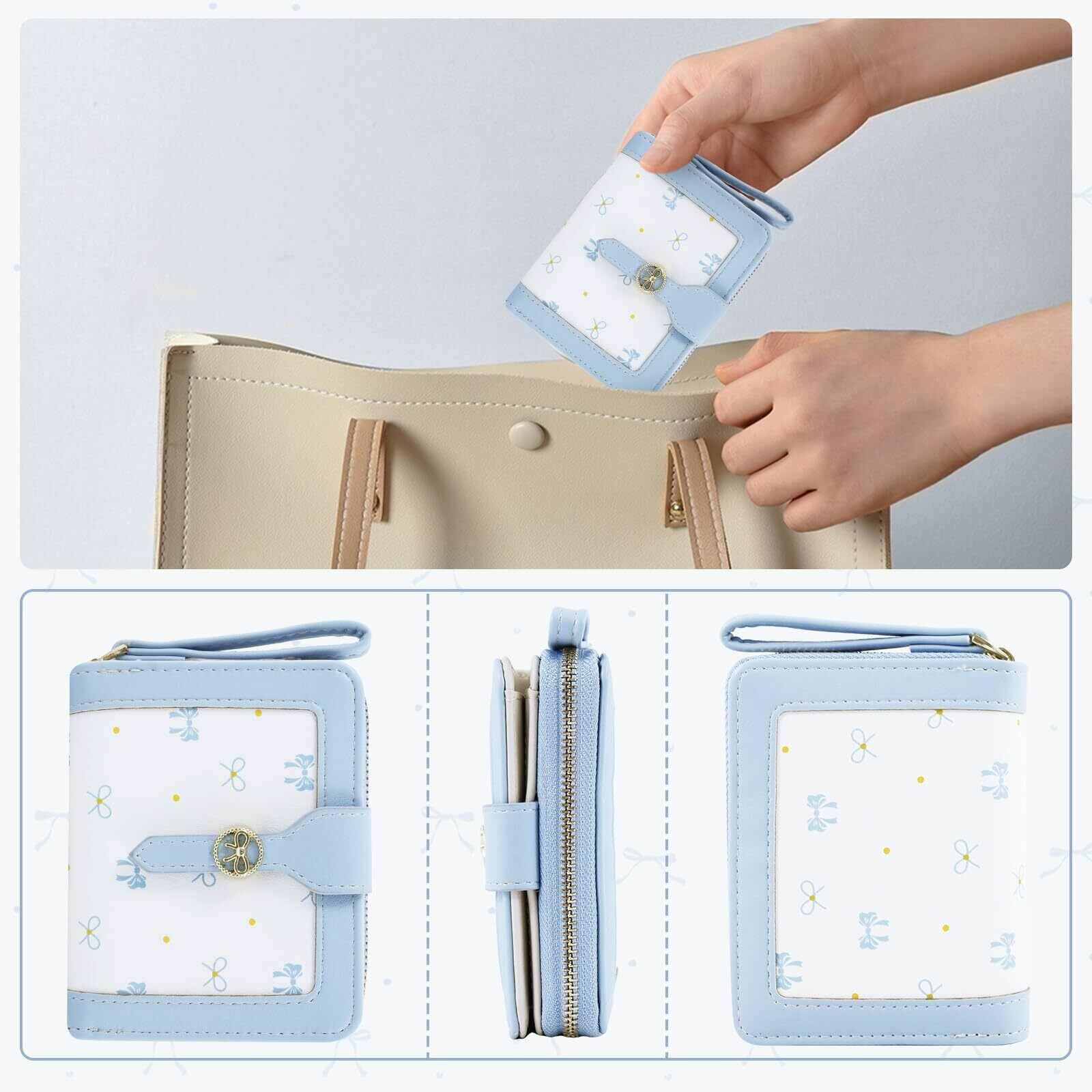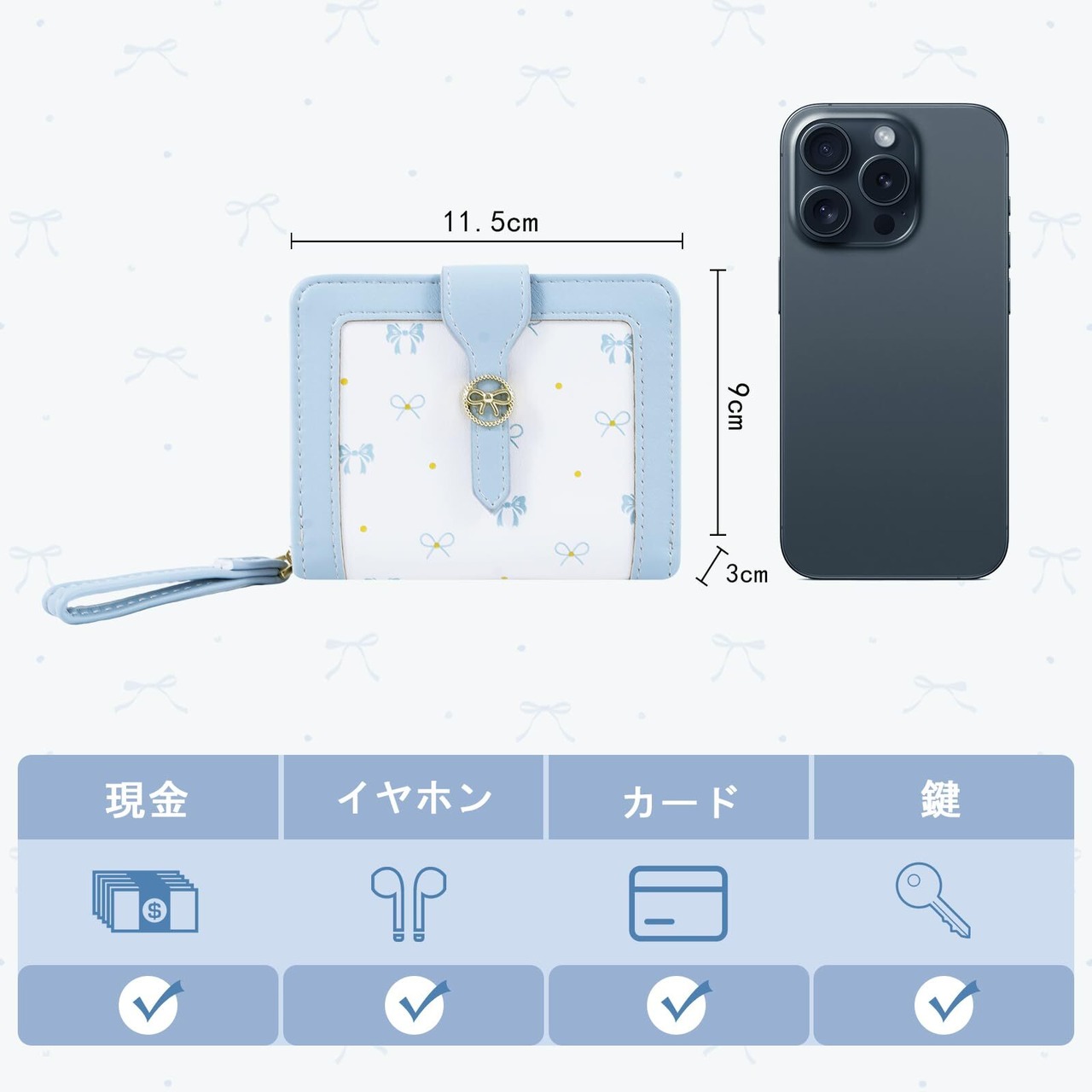 [DAMILY] 財布 女の子 かわいい 財布 子供 二つ折り 蝶結び財布 小学生 中学生 人気 女の子 財布 レディース おさいふ ミニお財布 ラウンドファスナー コンパクト おサイフ キッズ こどもの日 プレゼント (ブルー)