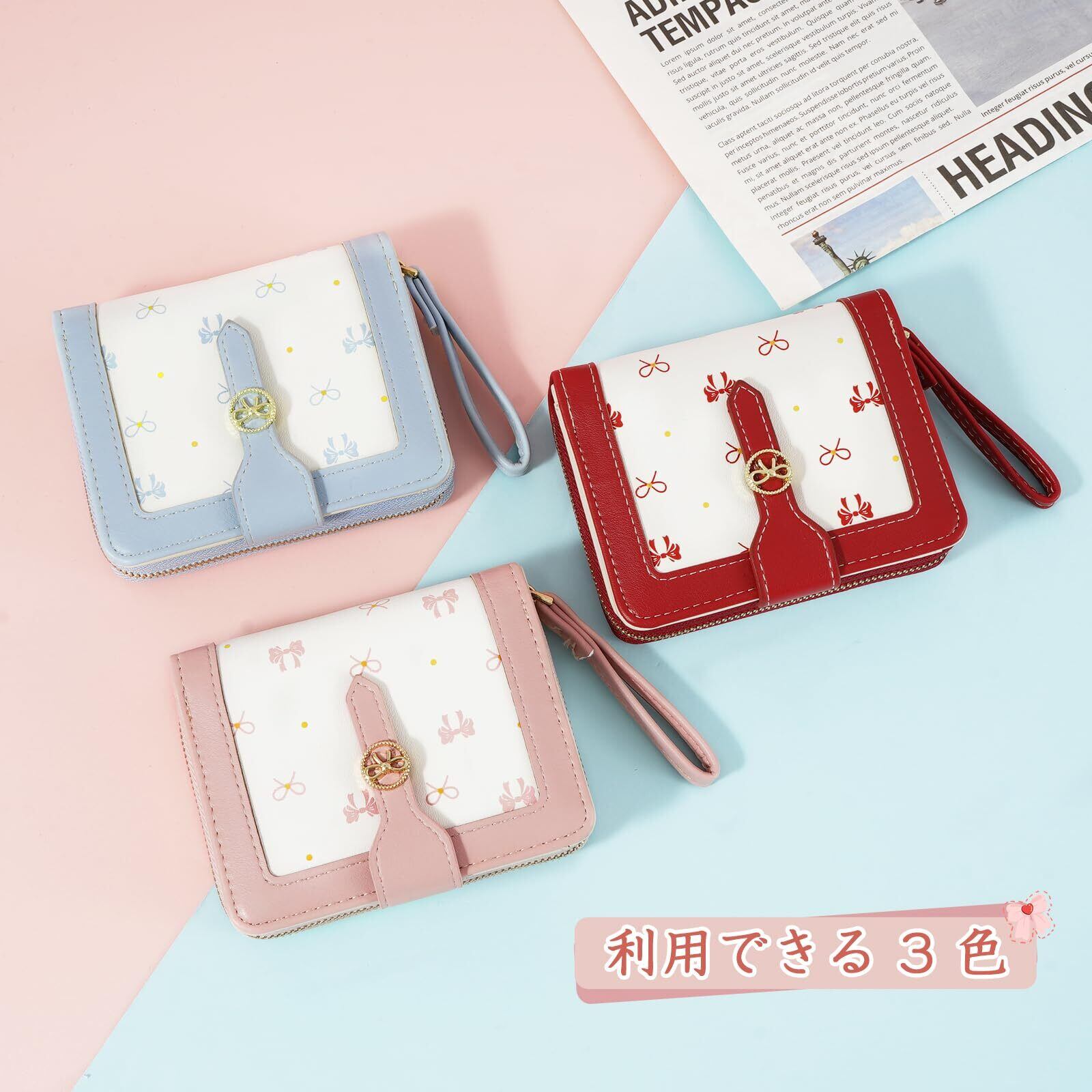【在庫処分】[DAMILY] 財布 女の子 かわいい 財布 子供 二つ折り 蝶結び財布 小学生 中学生 人気 女の子 財布 レディース おさいふ ミニお財布 ラウンドファスナー コンパクト おサイフ キッズ こどもの日 プレゼント (ブルー)