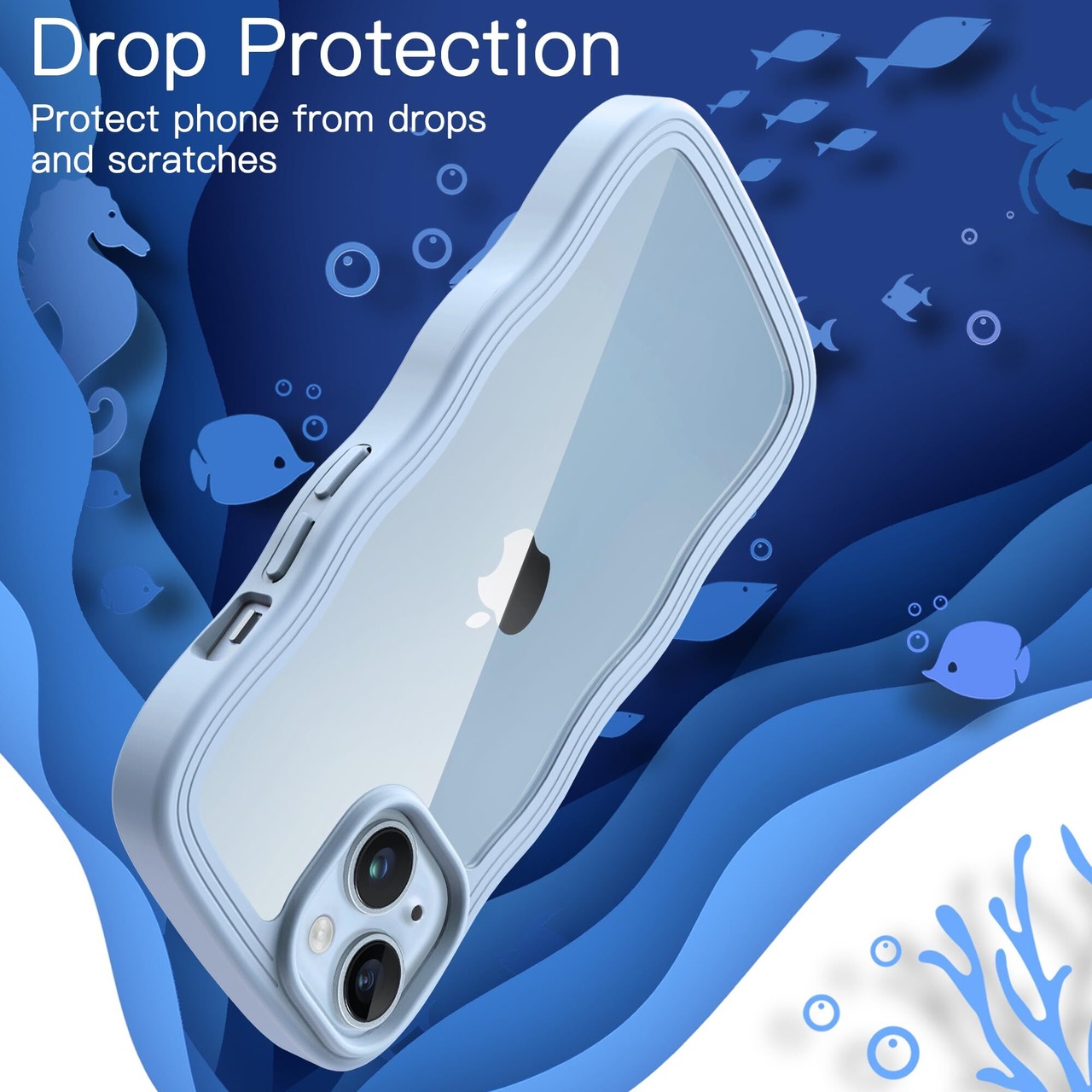 【特価商品】JEDirect iPhone 14 6.1インチ用 かわいい ケース 波状フレーム うねうね 耐衝撃 スマホカバー 女性用 女子向け クリア ハードPCバック (ブルー)