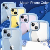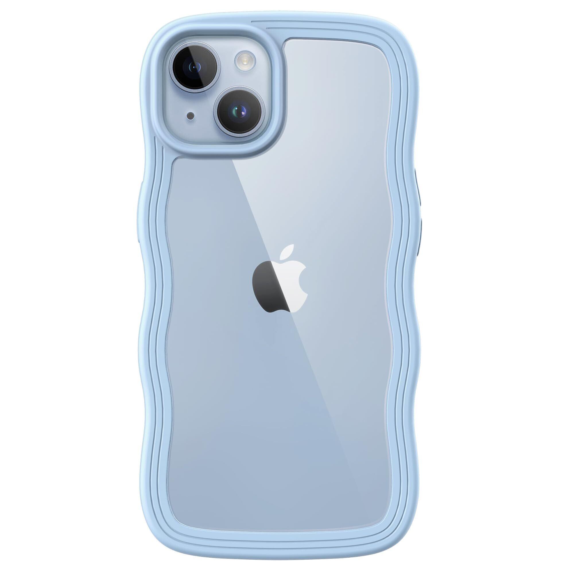 JEDirect iPhone 14 6.1インチ用 かわいい ケース 波状フレーム うねうね 耐衝撃 スマホカバー 女性用 女子向け クリア ハードPCバック (ブルー)