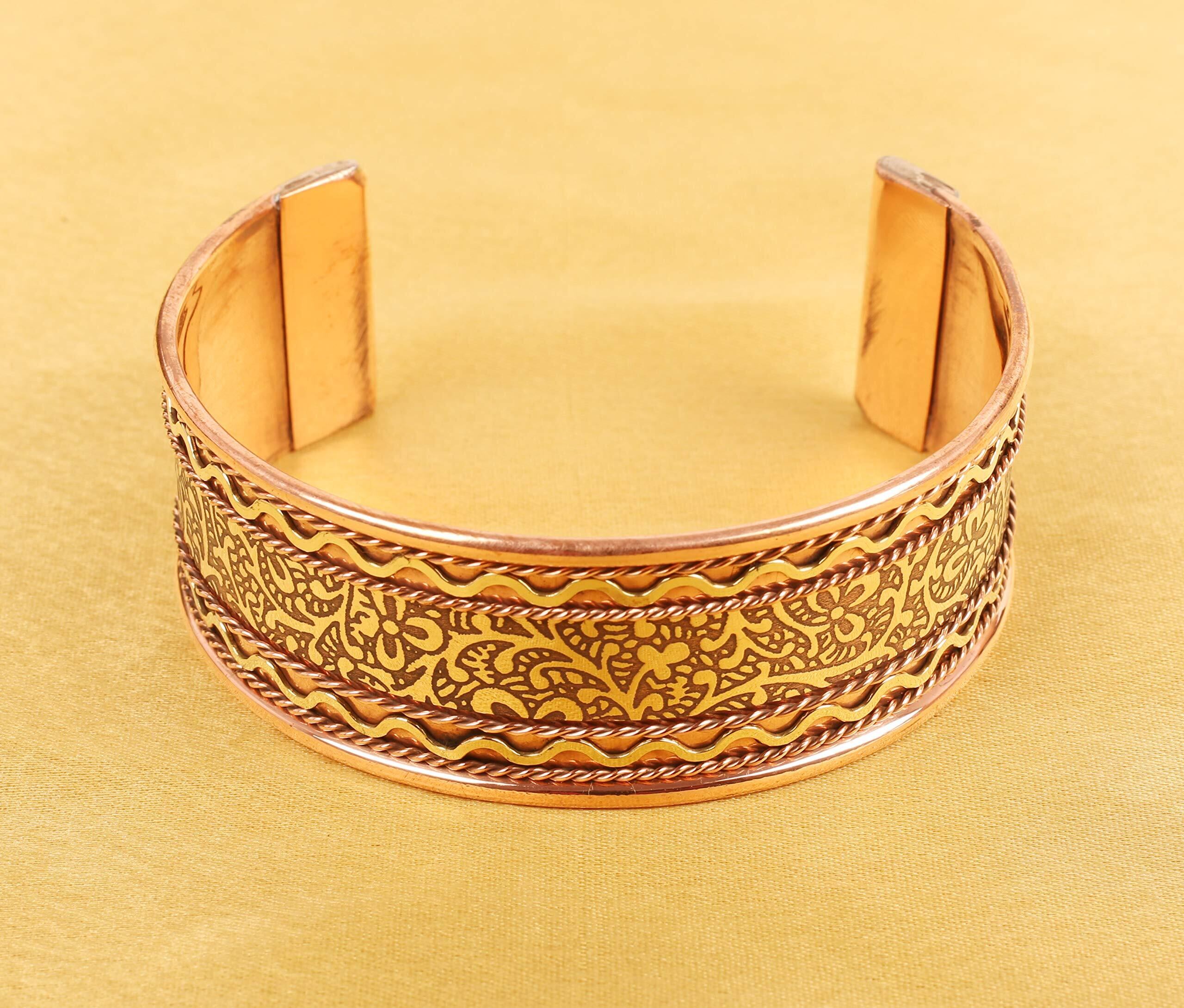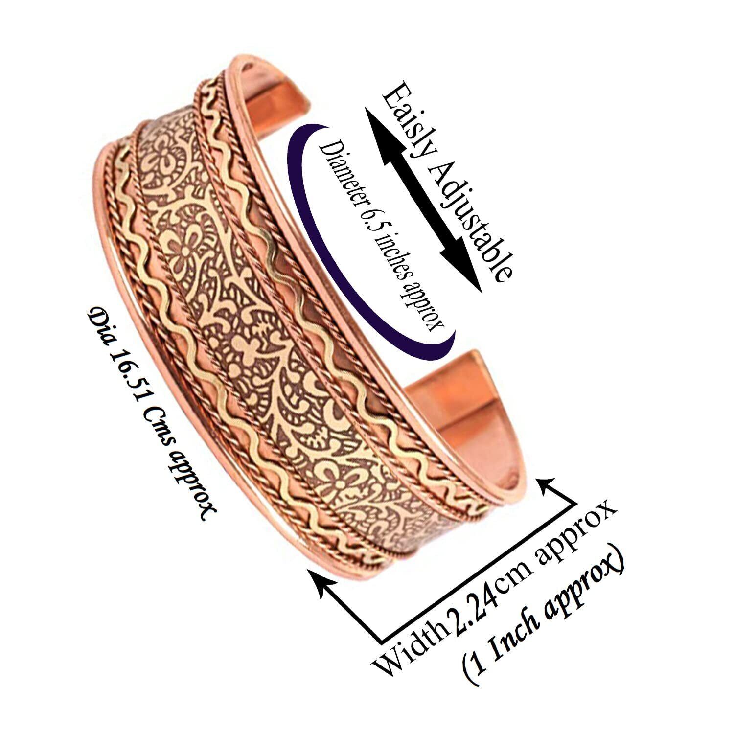 Touchstone銅ヒーリングブレスレットチベットスタイル。固体で高いゲージの純銅で鍛造された手。美しいエンボスデザイン。美しいデザインと細部への注意。世代を通して継承されたテクニックがあるインドの農村職人によって手作りされています。一生を続けます。