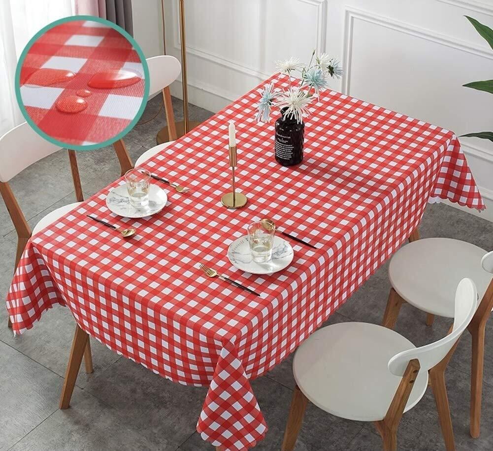 haruju テーブルクロス テーブルマット PVC ビニール キッチン ファブリック ギンガムチェック 大 (レッド 135cm×180cm)