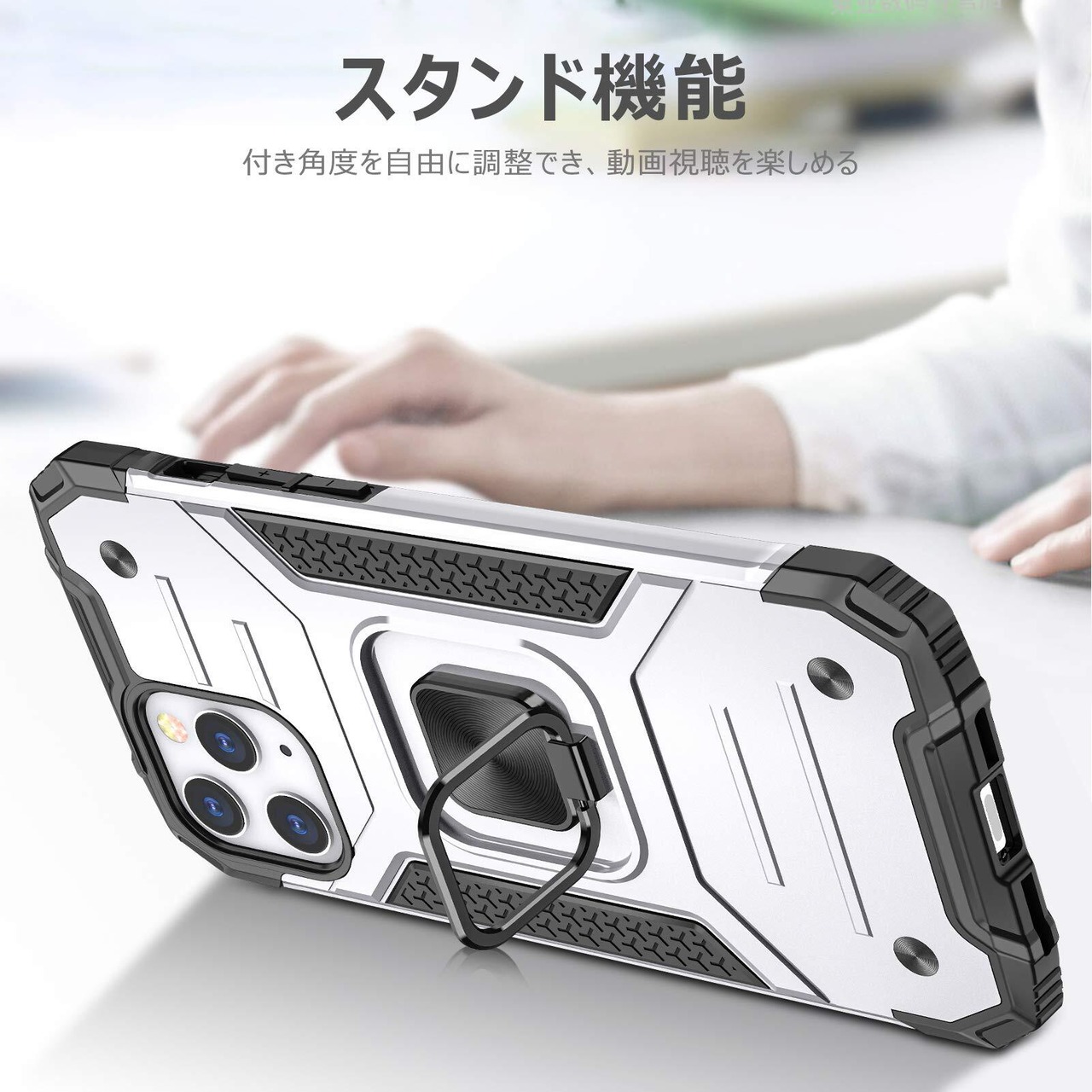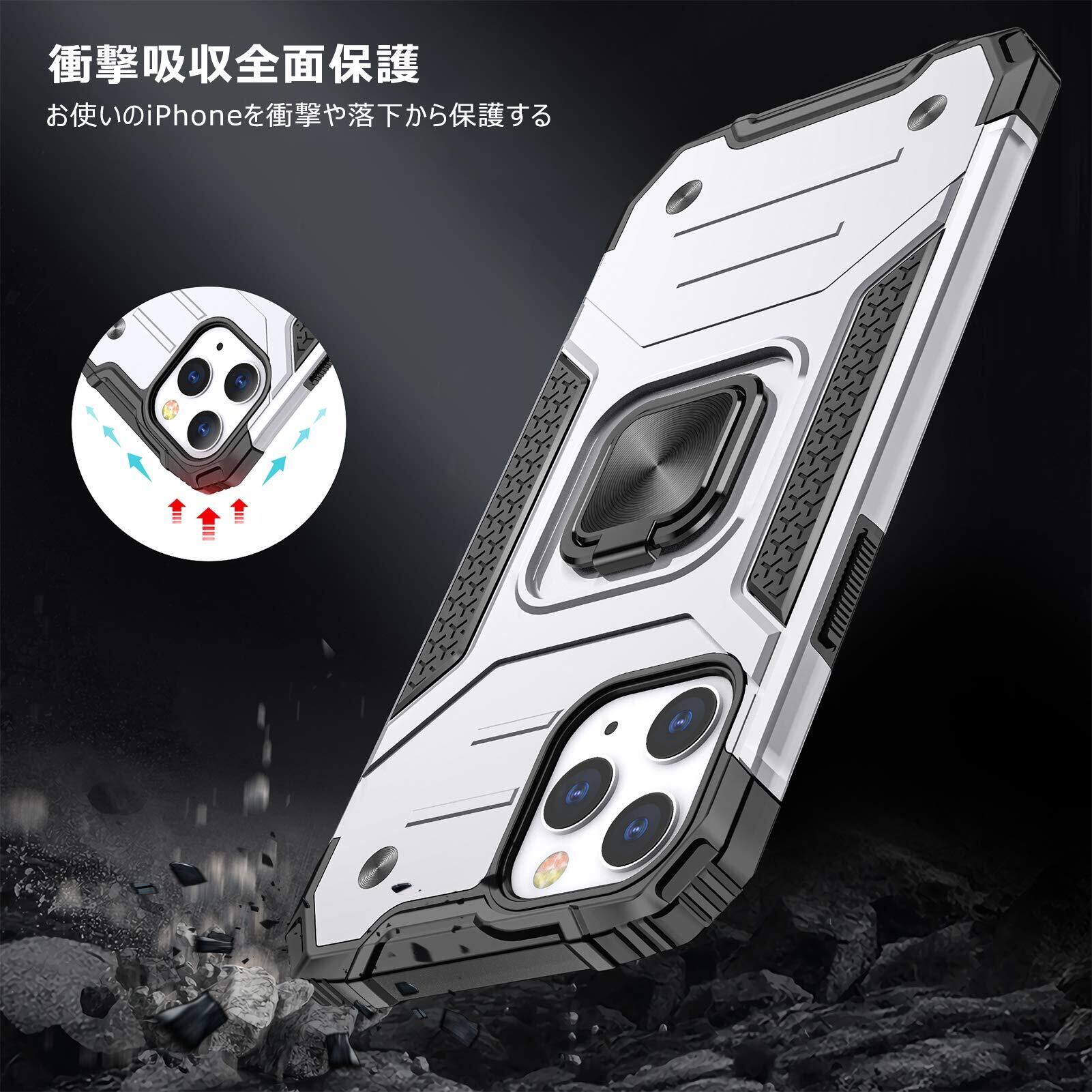 【在庫セール】TMUJWS iPhone 11 用ケース リング 衝撃吸収 耐衝撃 TPU+PCバンパー 二重構造 米軍MIL規格 全面保護カバー 滑り防止 車載ホルダー対応 擦り傷防止 滑り止め 軽量 薄型 アイフォン 11 用カバー 6.1インチ 指紋防止 耐久 おしゃれ 人気 携帯カバー 銀 MZ62-40 | ニコニコSHOP