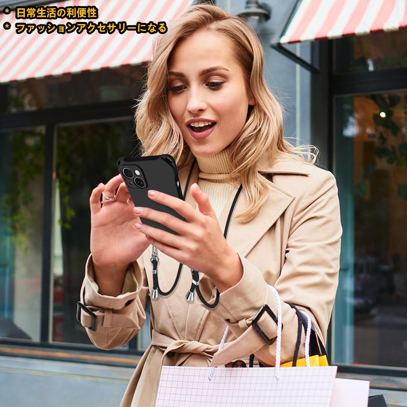 【2022最新】iPhone15 Plus ケース ネック ショルダー ストラップ付き スマホ シリコン 紐付き 耐衝撃 アイフォン15Plus カバー 斜めがけ 織りストラップ付き 調節可能なショルダー クロスボディ ネックレス ファッションデ 保護(ブラック)