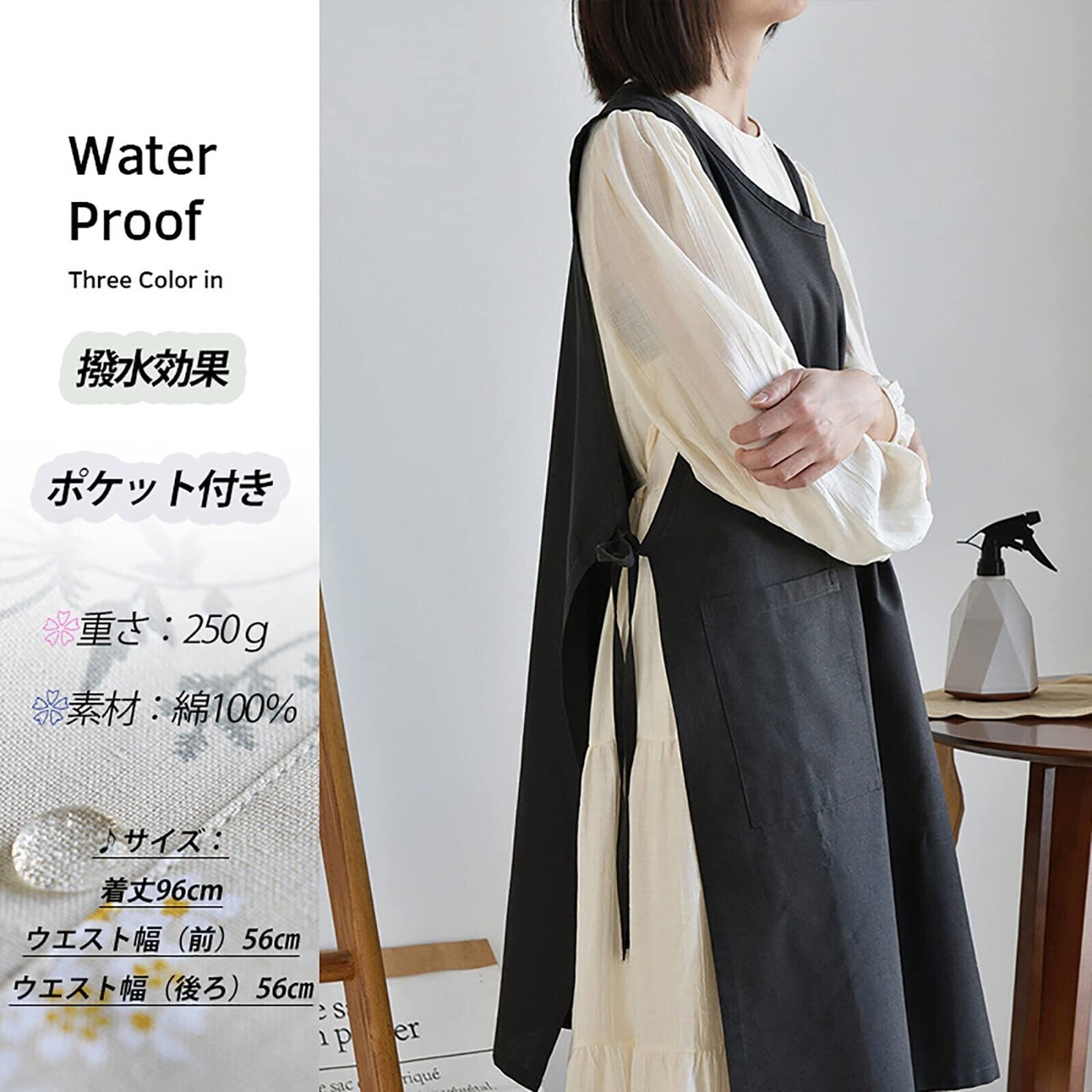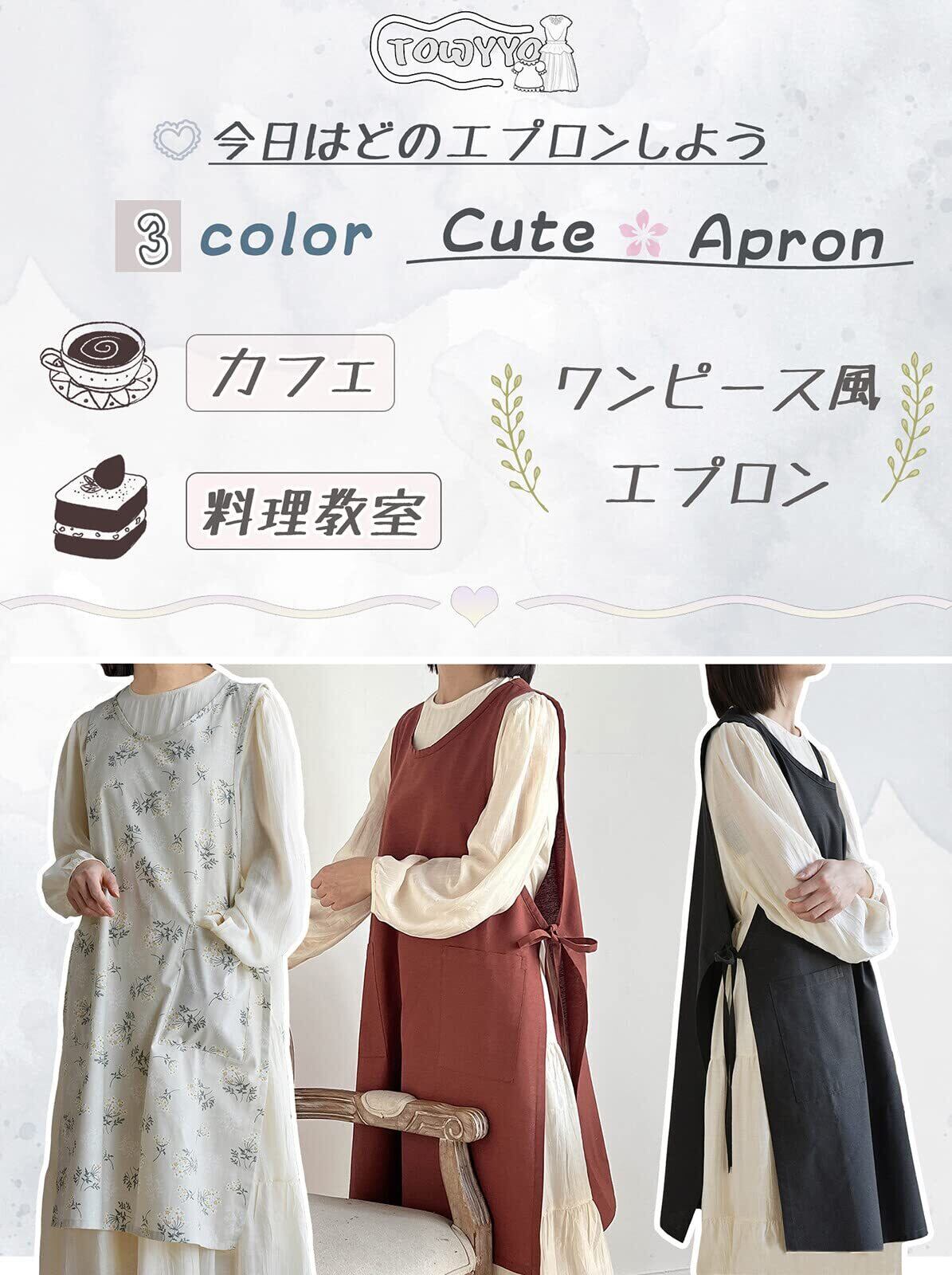 [TOWYYO] エプロン レディース かわいい 撥水 ベストエプロン ロング丈 花柄 無地 北欧風 ポケット付き ワンピース風 ゆったり シンプル 大きいサイズ 綿100% 2Way 肩掛け おしゃれ カフェ風
