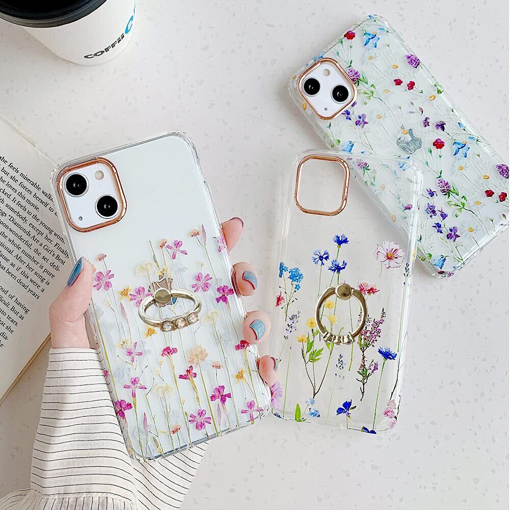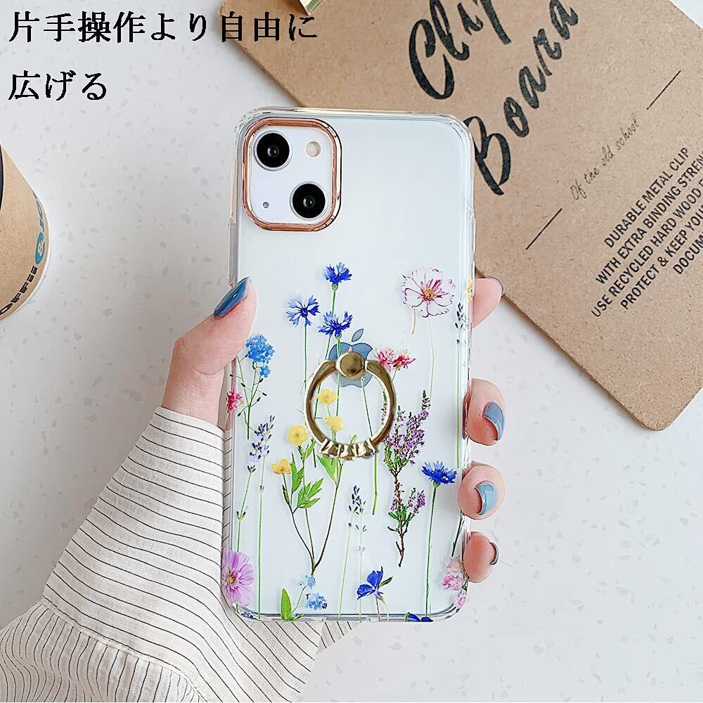 【新春セール】YUYIB iPhone15 ケース リング付き クリア 花柄 かわいい おしゃれ キャラクター 女性人気 耐衝撃 スマホケース 携帯カバー あいふぉん15 用 カバー (iPhone15 6.1", 花柄リング-3) | ニコニコSHOP