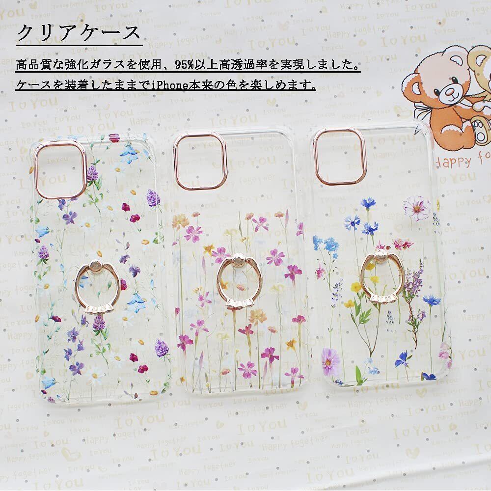iPhone 用 ケース クリア リング付き かわいい 花柄 ハード PC