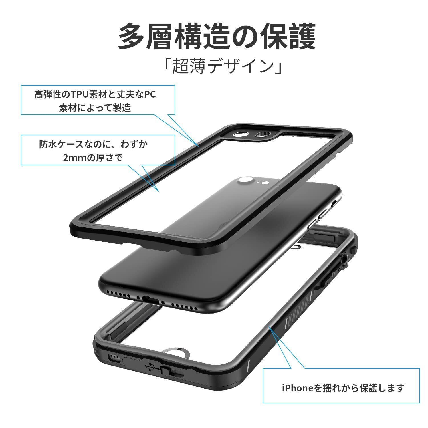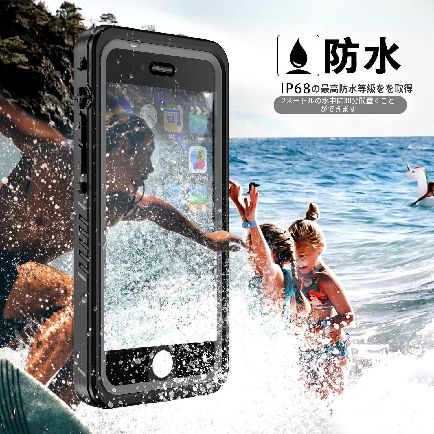 【IP68防水&多保護】防水国際保護等級IP68認定を獲得水没しても内部への水の侵入を完全にガードできます。 雨や、雪、泥や砂などから保護できます!ご注意:ご 使用の前に必ず携帯の代わりに一枚の紙をケースに入れて、iPhone SE防水ケースは最大水深2mで30分間の防水試験を行 ってください。