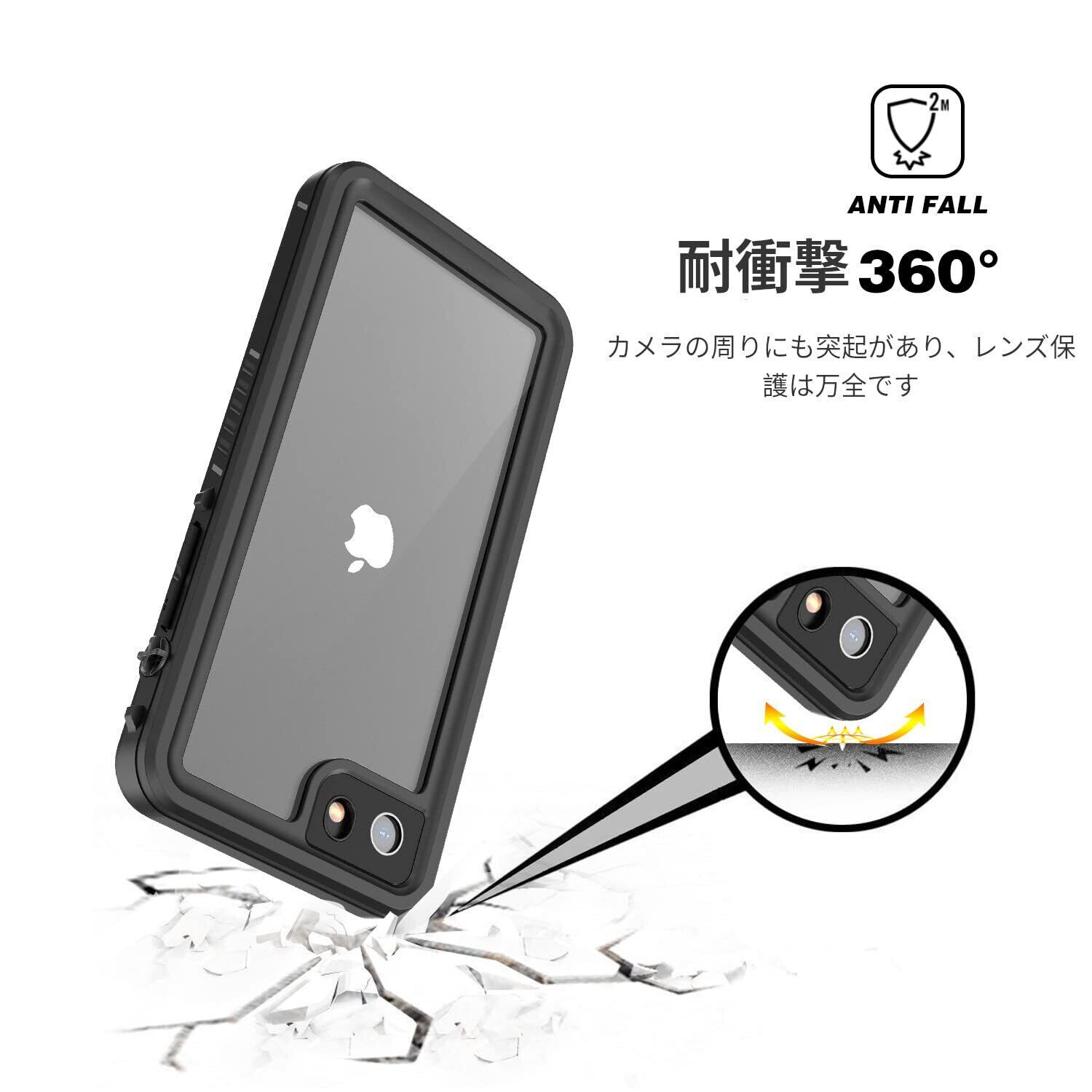 iPhone SE 防水ケース 第2世代 【DINGXIN】耐衝撃ケース360 全方向保護 米軍MIL規格取得 フェイスID認証 アイフォン 2se Qi充電対応 超軽量 塵 キズ·落下防止 高耐久ケース (iPhone SE (第2世代), ブラック)