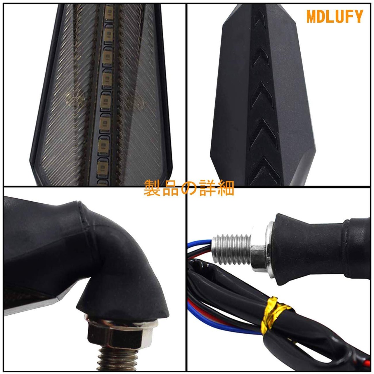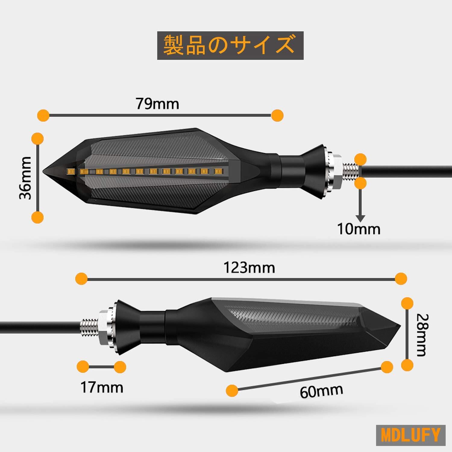 バイク 流れるウインカー シーケンシャル 12SMD led 12V バイク アンバー ウインカーライト led 高輝度 両面led 矢印形 ウインカーライト 耐衝撃設計 簡単取付 防水 汎用 (4個セット)