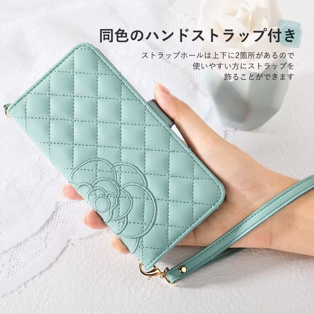 ✿ 【オリジナルデザイン】オリジナルの花柄(カメリア)の刺繍が可愛いケースです。高級感が溢れどんなシーンでも自由に使えます。丁寧に刺繍されたので、糸のほつれを気にする必要がありません。メイク直しミラー付き、お化粧チェックに最適。ステキなハンドストラップ付き、スマホの紛失や落下を防ぎます。