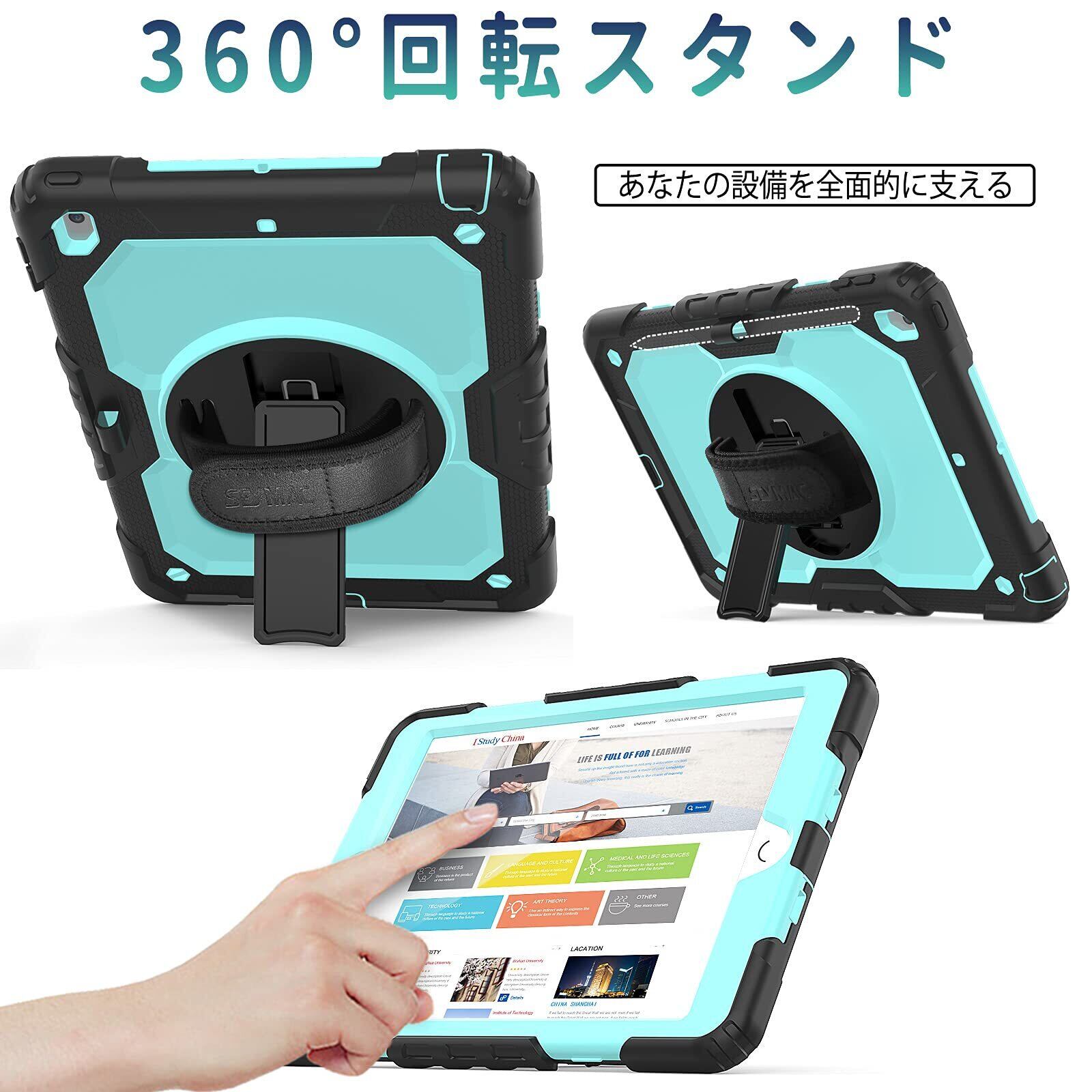 【在庫処分】SEYMAC stock iPad 10.2インチ 第9世代/第8世代/第7世代 ケース 耐衝撃 保護フィルム付き ペン収納 360°回転スタンド ハンドストラップ ショルダーストラップ 全面保護カバー (スカイブルー+ブラック) | ニコニコSHOP