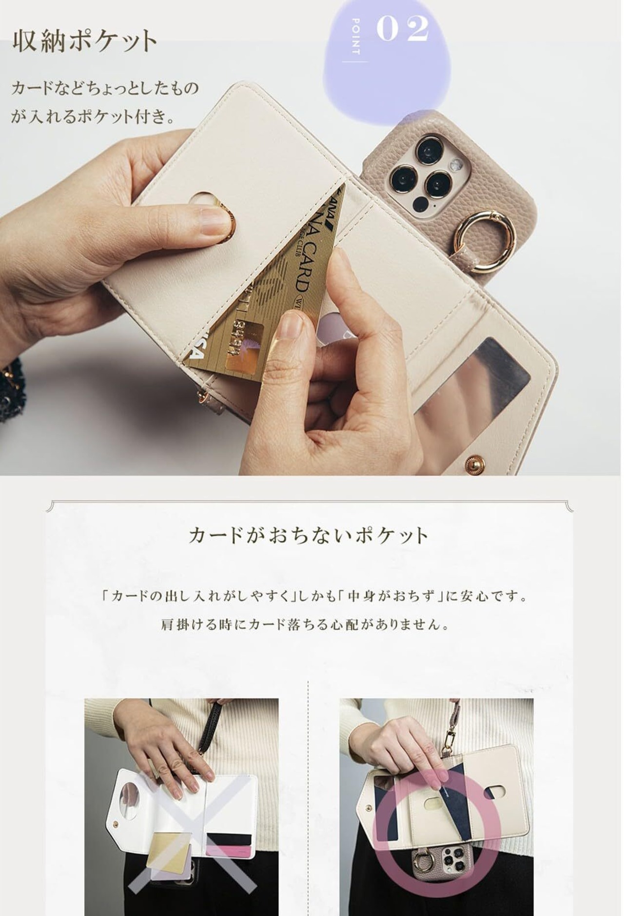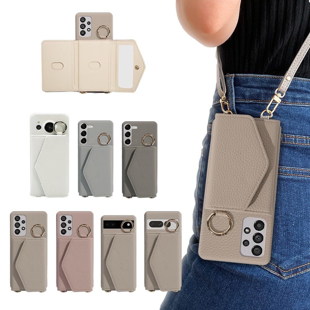 Google Pixel 7 スマホケース ショルダー タイプ 携帯ケース 背面手帳型 背面カード収納 鏡付き 肩掛け 斜めかけ リング付き ミラー付き カード収納 背面ポケット 財布付き マグネットなし レザー ストラップ付き