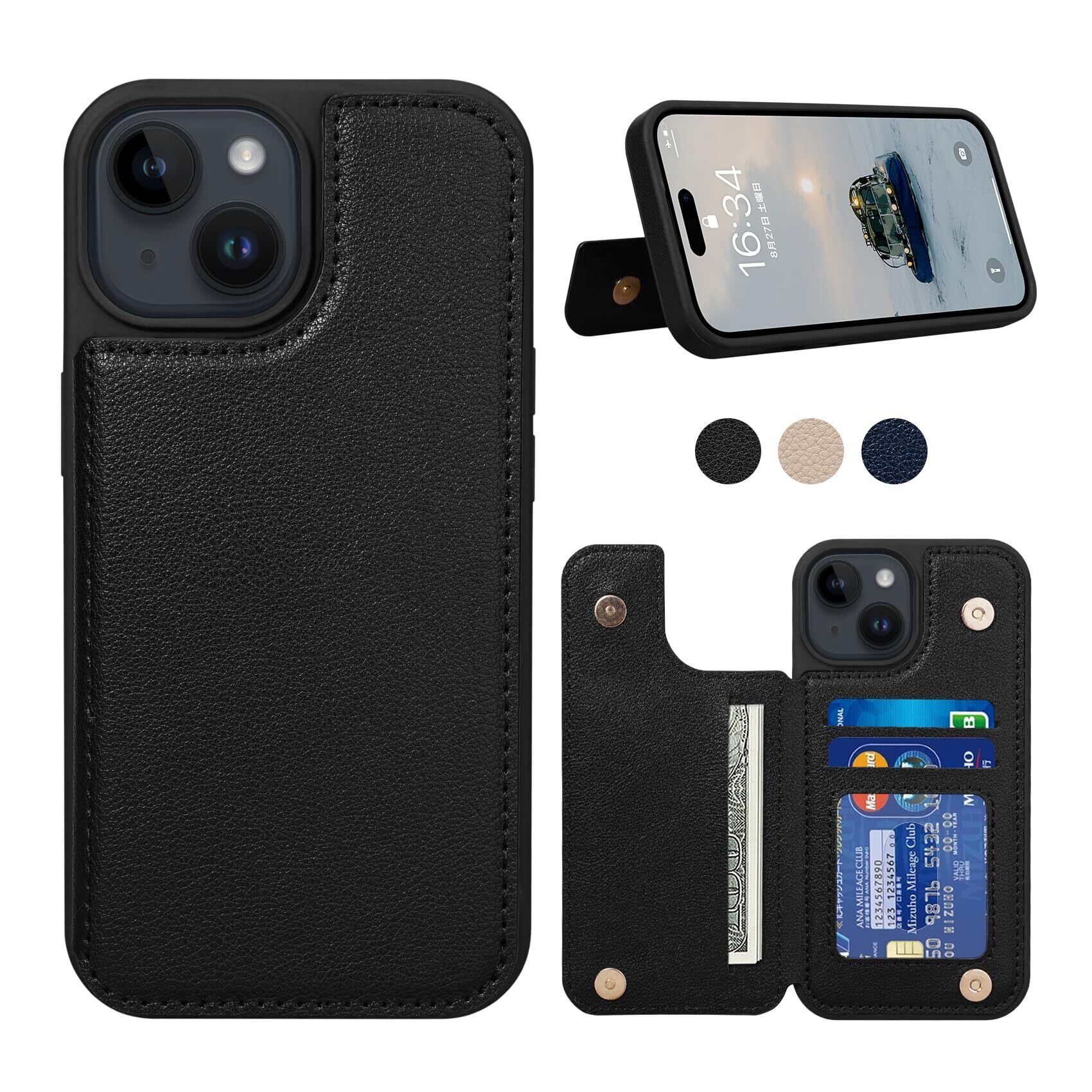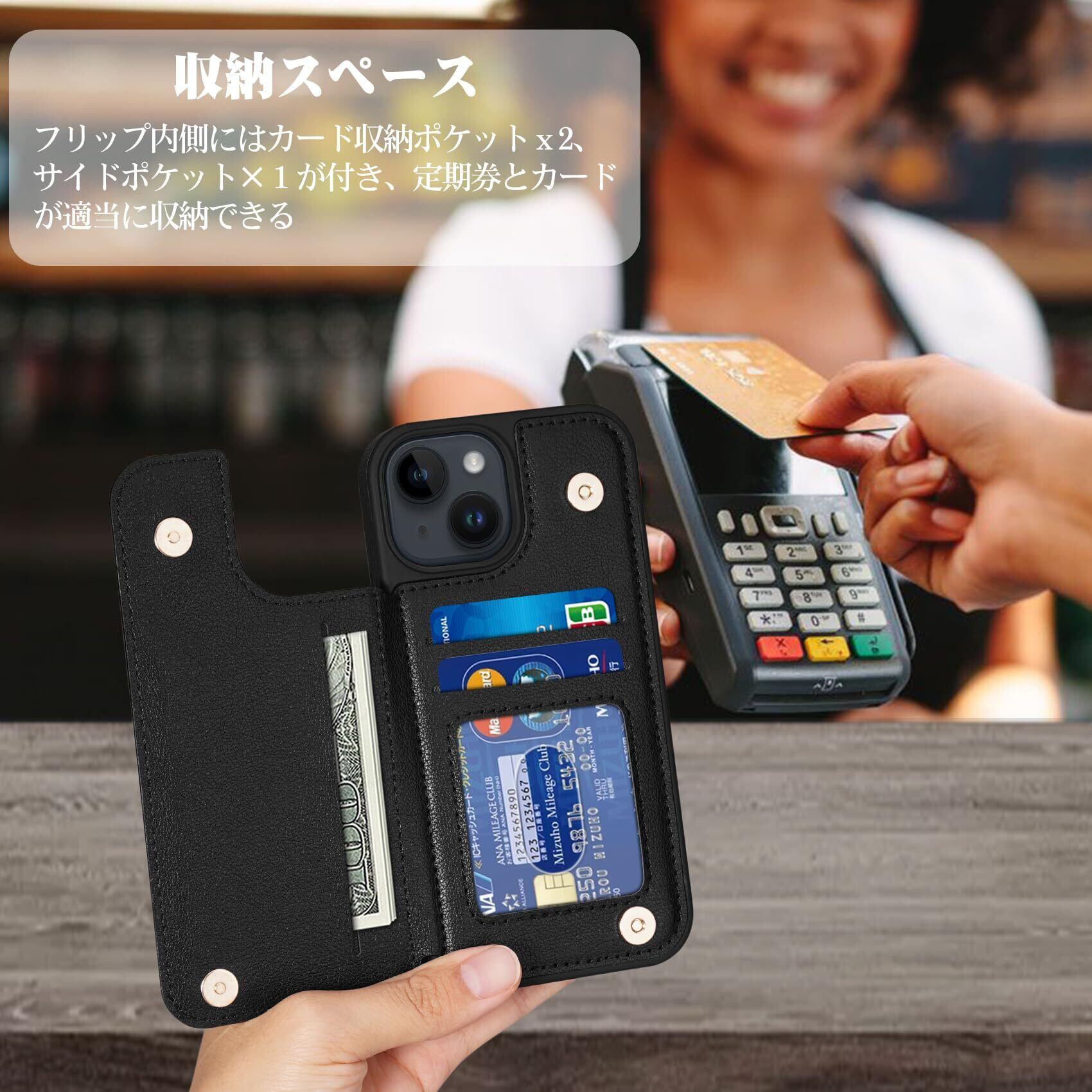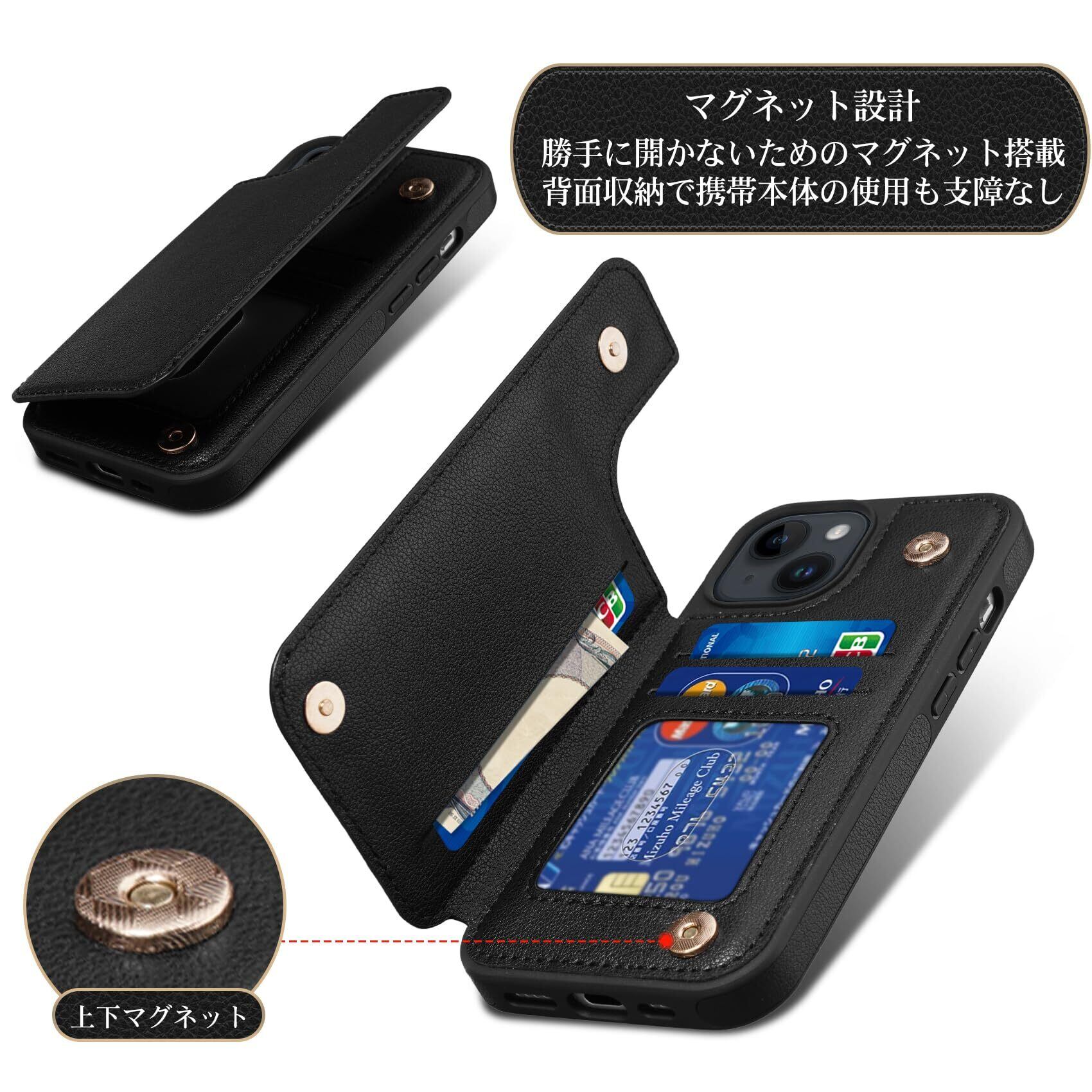 【人気商品】iPhone 15 用 ケース 背面 手帳型 カード iPhone15 用 背面ケース 手帳型ケース スマホケース ICカード収納 Shlybaay 軽量 アイフォン15 用 ケース カバー アイホン 15 用 手帳型ケース 磁石吸着 背面 カード収納 プレゼント おしゃれ ファッション 耐衝撃 便利 多機能 落下保護 写真入り 6.1inch対応 T1 ブラック