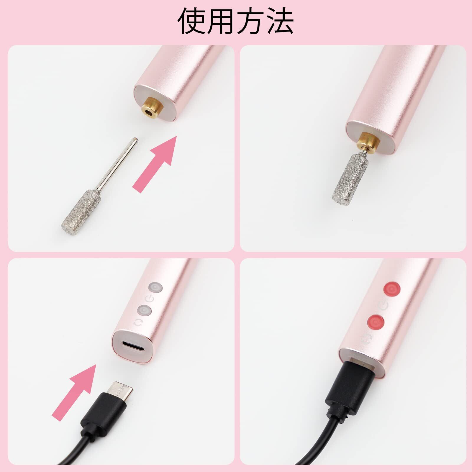 【充電式ので、持ち運びやすい】USB充電、外出時に便利な持ち運びができます。正/逆回転、左右の手で使用できます。 3.ガバナは1速から3速に設定できます。先端部にナチュラルな白いLEDライトが付属しますので、薄暗い場所にも気持ちよくネイルをケアできます。一台多役で多機能な電動ネイルドリル。