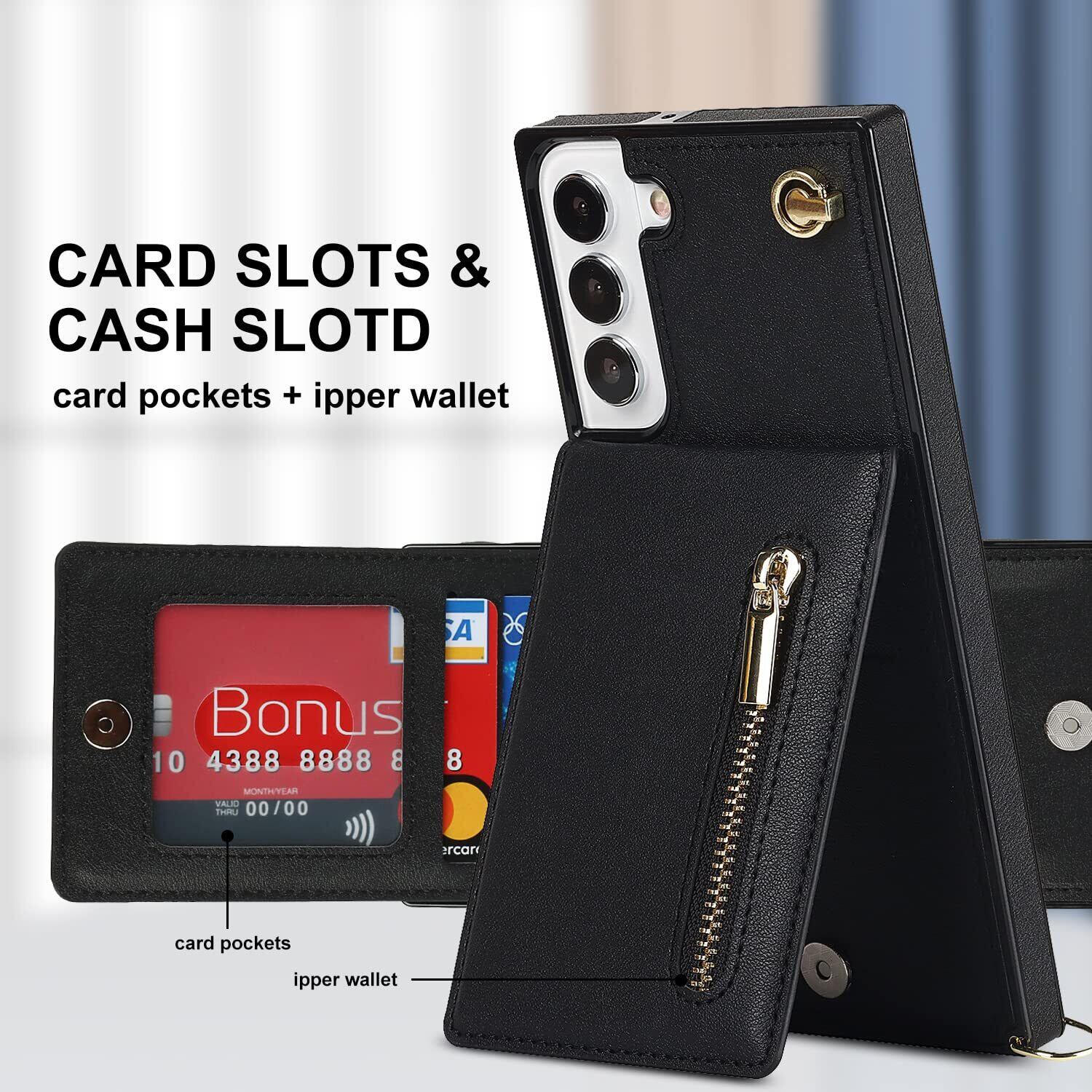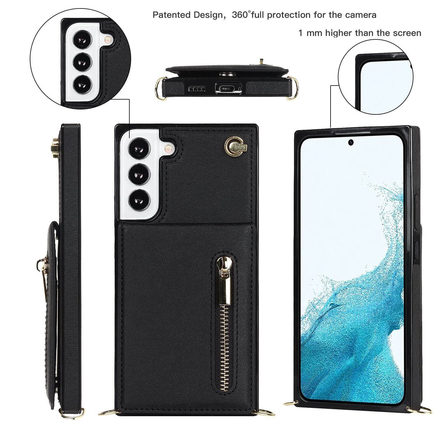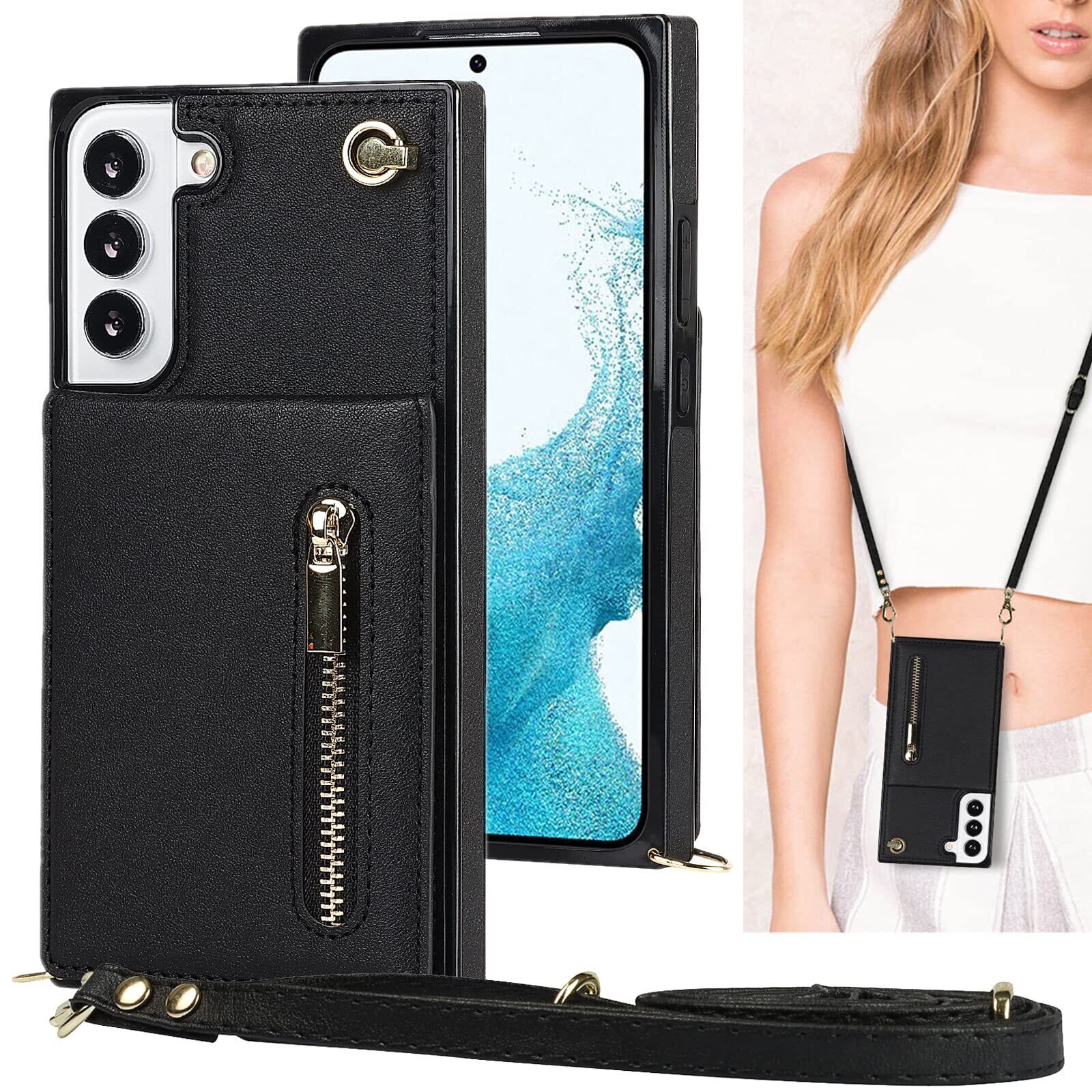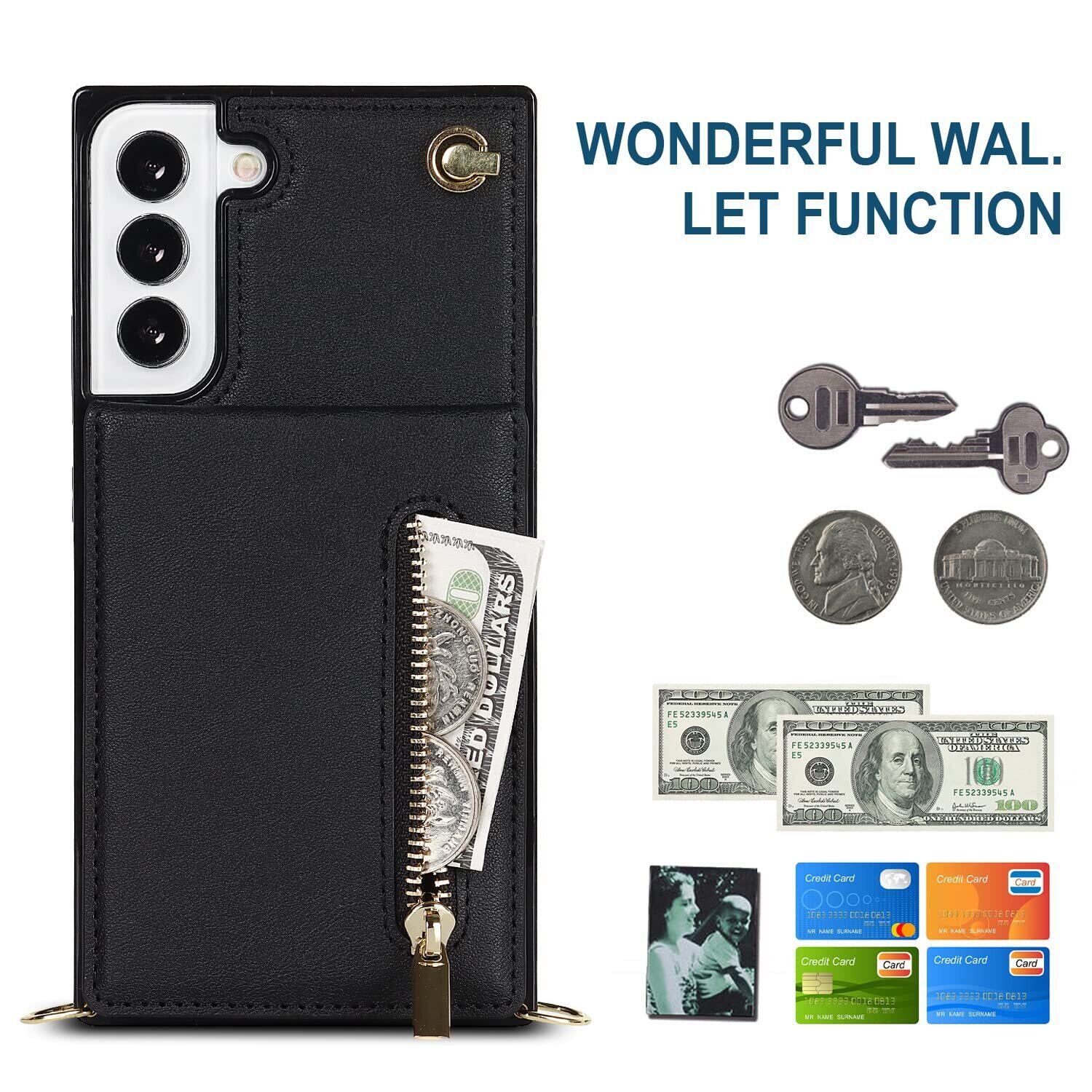 S22 galaxy ケース 手帳型 ショルダー ポシェット Galaxy S22 ケース 手帳型 ショルダー SC-51C ケース S22 手帳ケース docomo / SCG13 ケース au 対応 S22ケース サムスン ギャラクシー S22 カバー S22 ケース SC51C ケース SCG13 カバー スマホケース S22ケース ポシェットケース 適用 case 【iCoverCase】 肩がけ 首掛け 斜め掛け カードケース チェーン ファスナー型 ストラップ付き ショルダーケース クロスボディ カード入れ スマホケース 携帯カバー ブラック