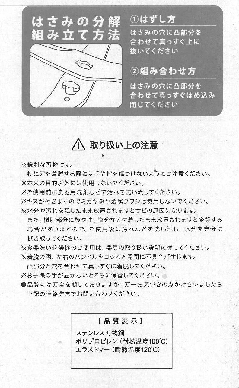 材質:刃部/ステンレス刃物鋼 柄部/PP樹脂(耐熱100℃) TPV樹脂(耐熱120℃)・マイクロセレーション(ギザ)付ですべりにくくカットも スムーズ。・下処理時の色分け管理にも対応。・工具なしで分解洗浄が出来るので大変衛生的にご使用 出来ます。※洗浄機対応