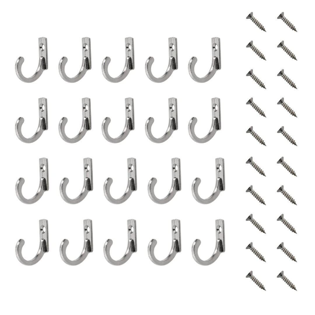 Modest Joy アンティークフック 調 壁 ネジ付き 洋服 コート 帽子 ハンガー シンプル かわいい 20個 セット (銀)