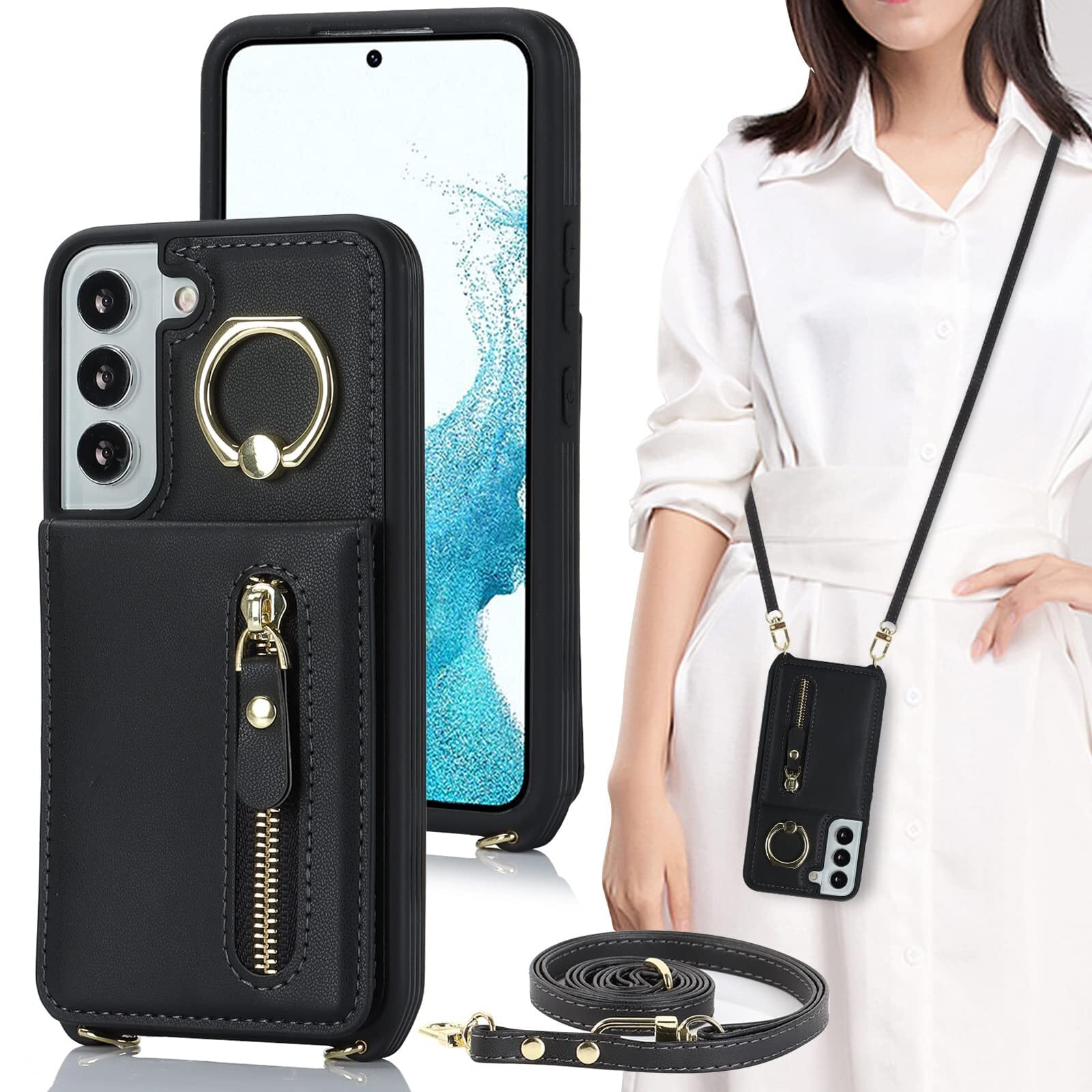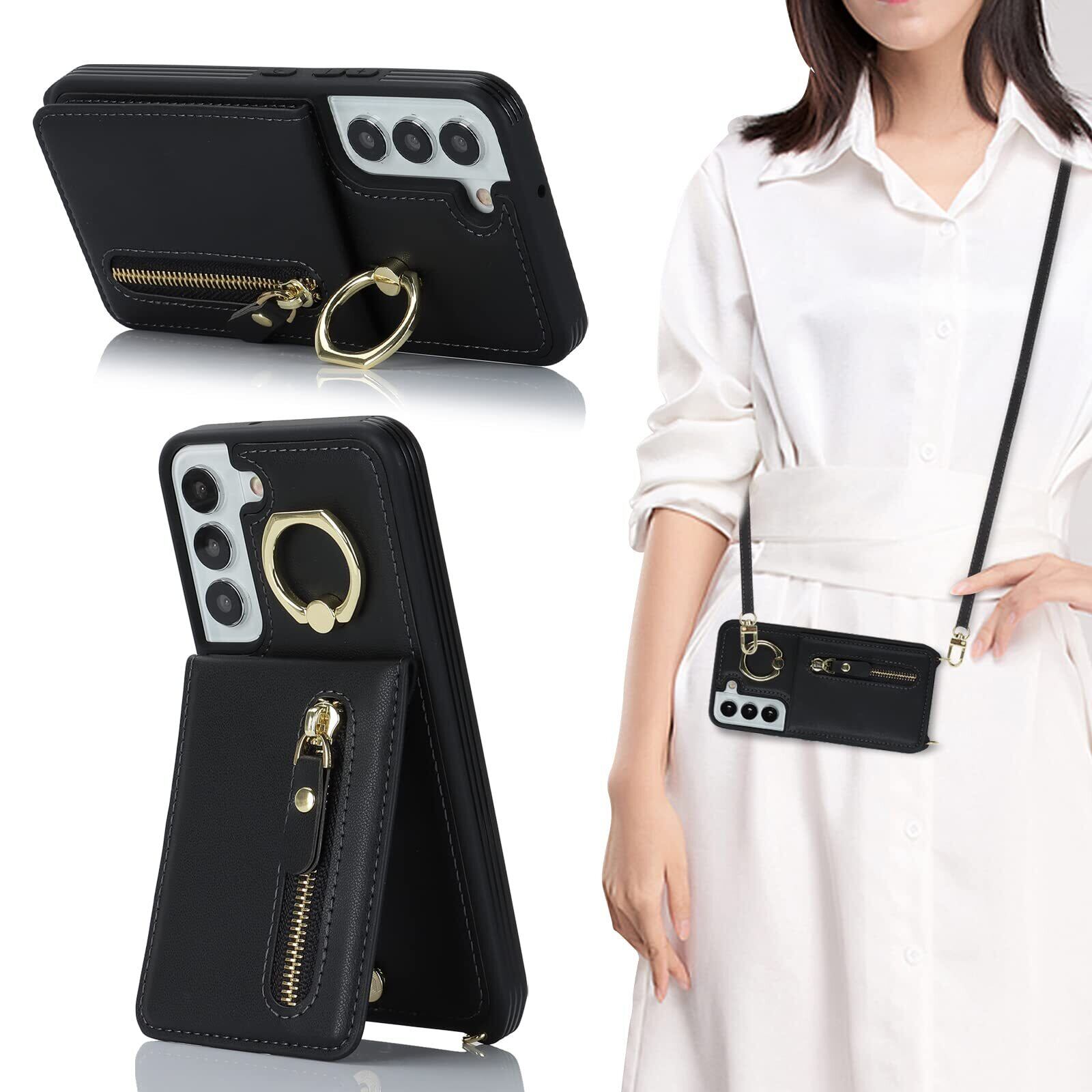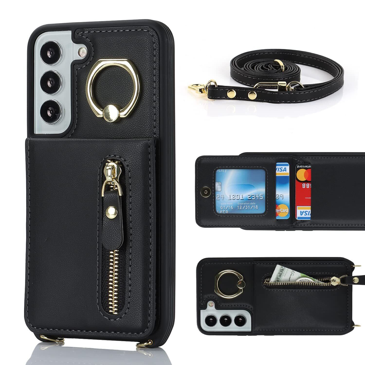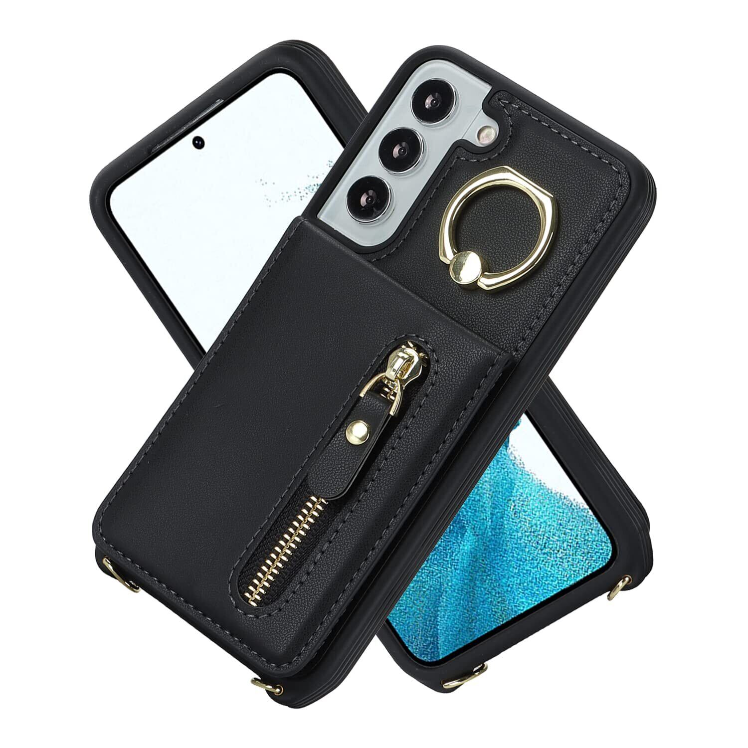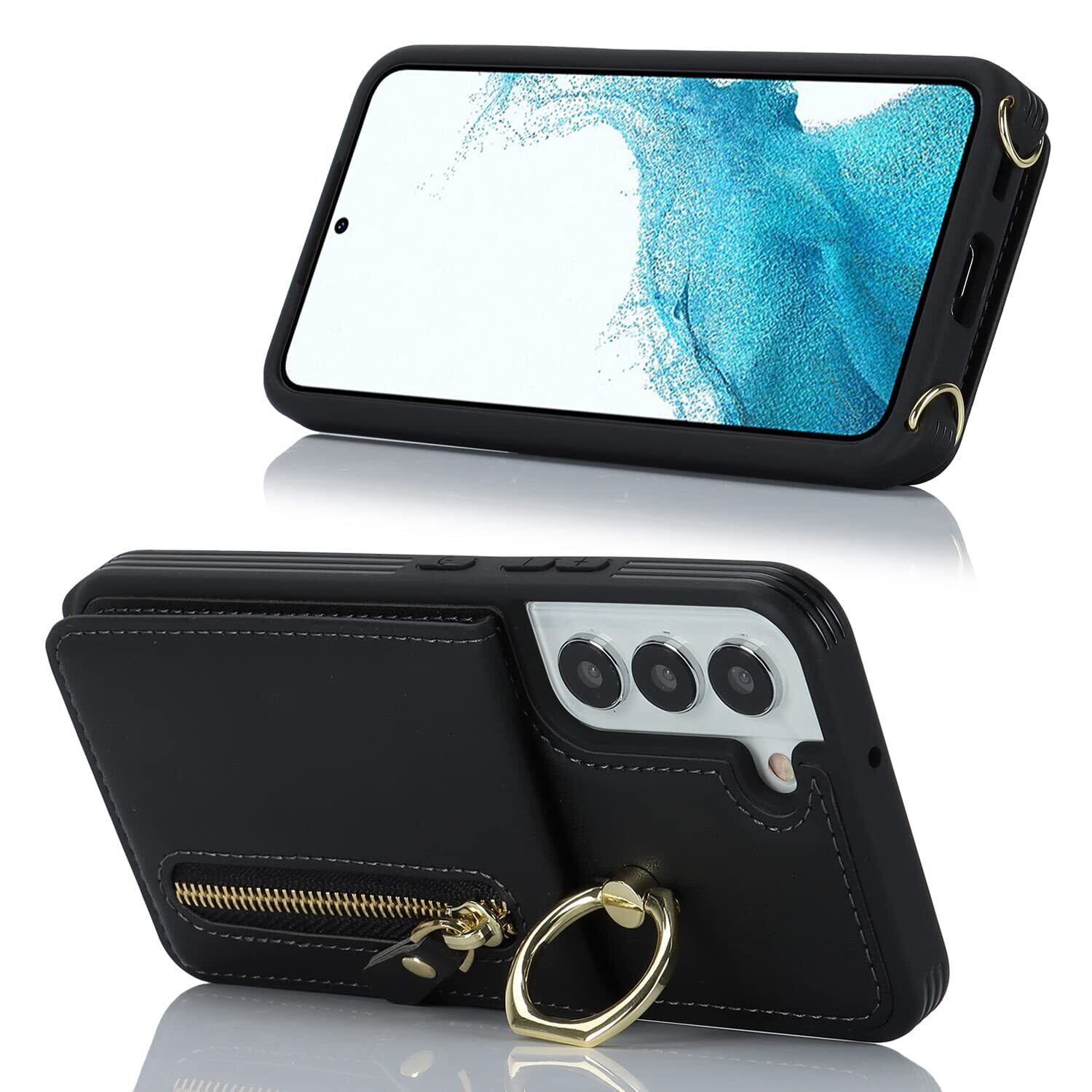 S22 Galaxy ケース ショルダー リング付きケース 上下開 手帳型 リング付き galaxyS22 リング Galaxy S22 5G ケース ショルダー SC-51C docomo / SCG13 au 対応 サムスン S22 galaxy ケース SC51C ケース SCG13 カバー エス22 カバー サムスン ギャラクシー S22ケース スマホケース 携帯カバー 財布 case 適用 【iCoverCase】 リング カードケース カード収納 スナップ式 横置き スタント 肩がけ 首掛け 斜め掛け ファスナー ストラップ付き ショルダーケース カード入れ カバー スマホケース 携帯カバー ブラック