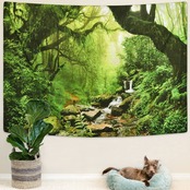 Pknoclan 森タペストリー 木 渓流柄壁掛けタペストリー 自然風景壁掛け布 235x180cm超大判布ポスター 部屋 窓 模様替え インテリア飾り