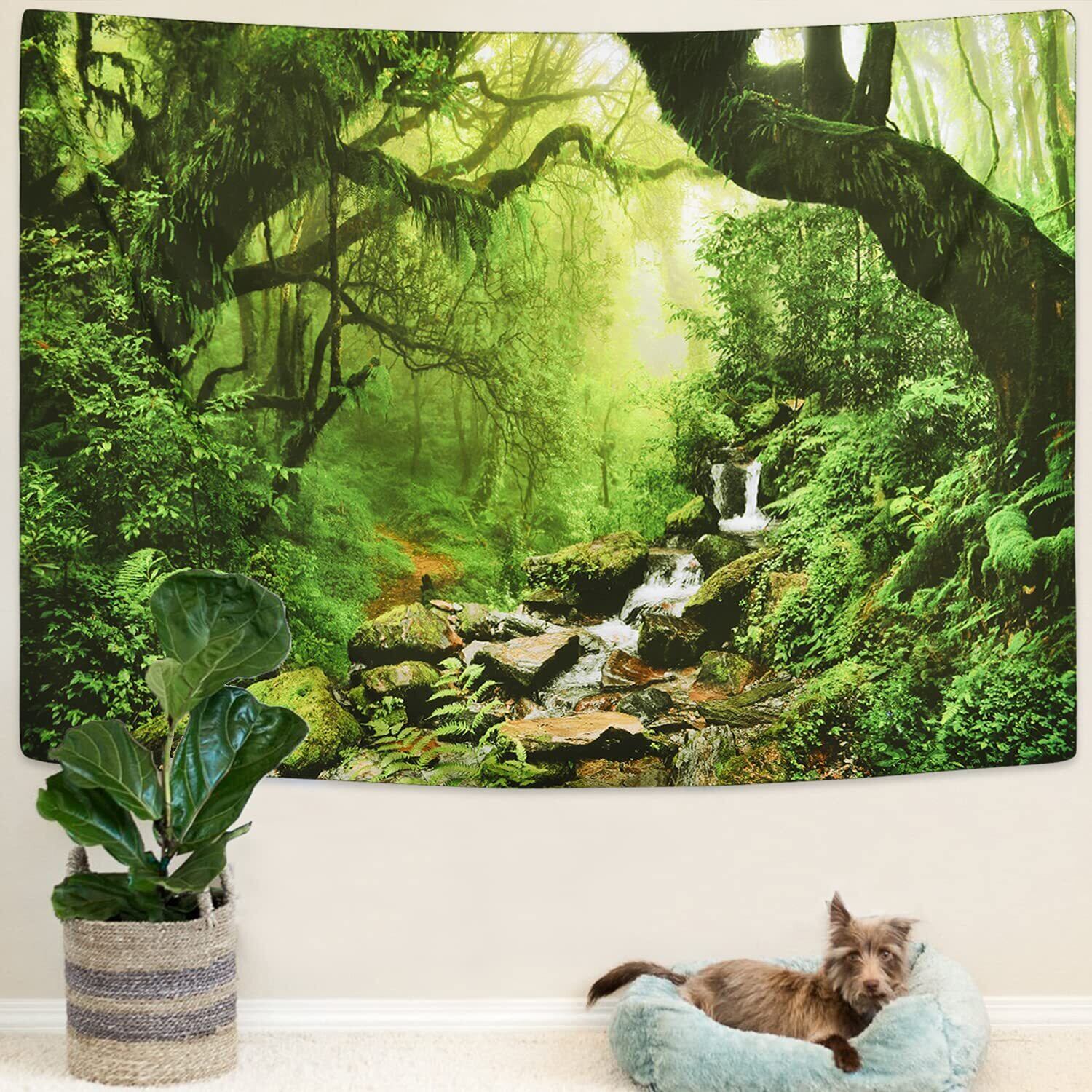 視覚インパクト:渓流柄タペストリーは3Dパターン印刷、鮮やかな色、色あせなし。掛けた瞬間空間の雰囲気を一気にイメージチェンジ。森の中にいるような気持ちが湧き出てきました。仕切りとしても使えますし、季節や気分に合わせて変えられます!
