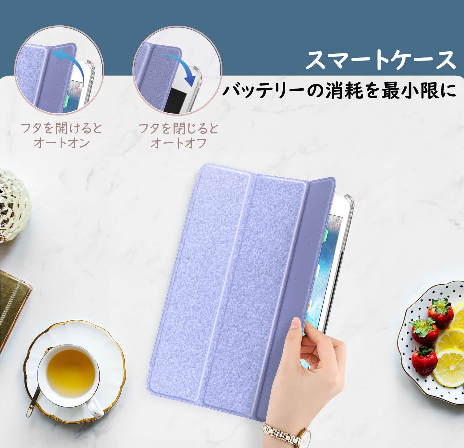 ケースを開閉することより自動的にスリープオン/オフが行われ、バッテリーの消耗を最小限に抑えられます。