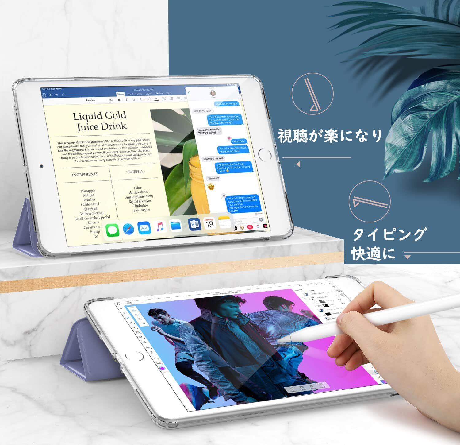 「2つのスタンド角度」安定なスタンド付きでしっかり固定できて、タブレットをPCになって、お好きな角度で動画視聴、仕事、タイピングすることをご利用いただけます。