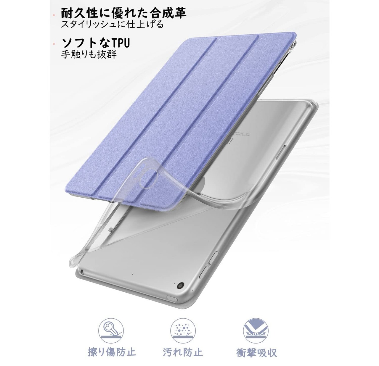 【新春セール】Dadanism iPad Mini5 ケース 2019モデル iPad Mini 第5世代 / 第4世代 通用 保護ケース スマートカバー 無色透明バック 薄型 PU レザー キズ防止開閉式 三つ折薄型 TPU素材 スタンド機能 衝撃吸収 オートスリープ機能付き Lavender