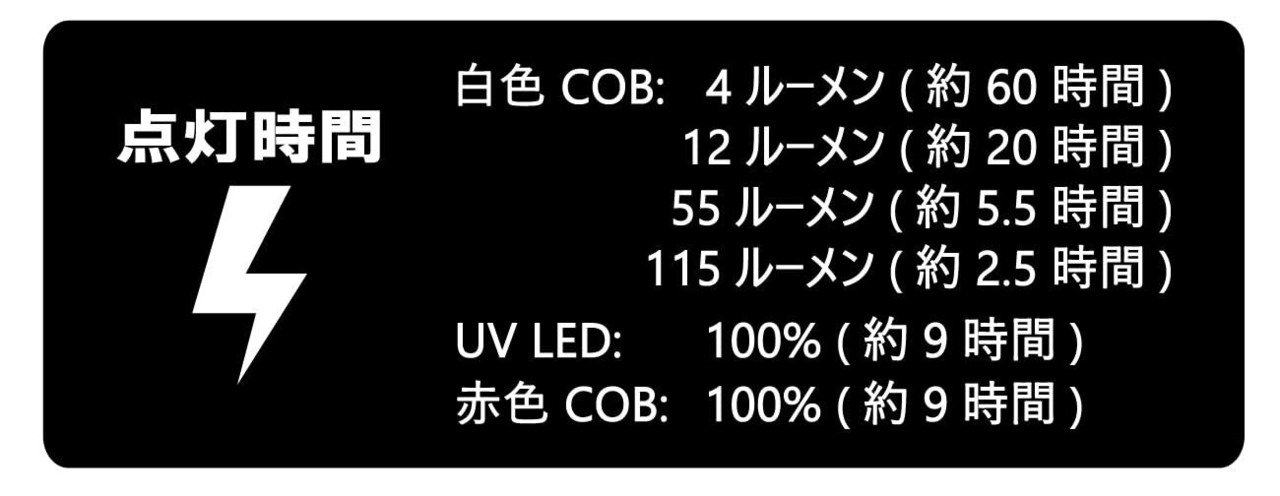 ●バッテリー残量表示付き。●ツバ上装着タイプで、視界の邪魔にならない。●手元のみを照らす手元ライトモード。● IPX4(防滴仕様)。●メモリーライト機能付き。●バッグ内での誤点灯を防ぐロック機能付き(1秒間に2度押しで点灯)。●クイックオフ機能:3 秒後以降に 1 回押せば消灯。