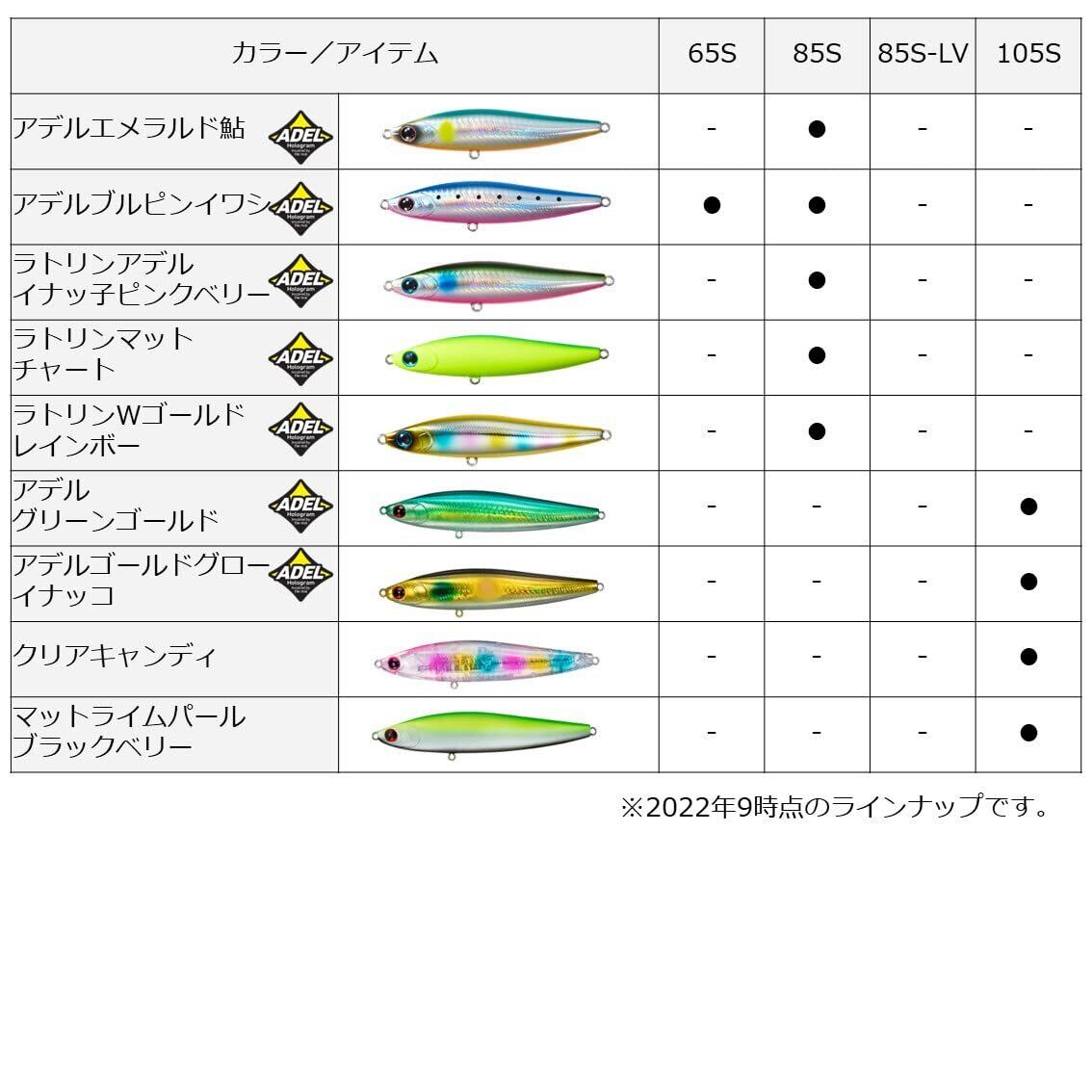 ダイワモアザン スイッチヒッター 105S◆タイプ:スローシンキング◆サイズ(mm):105◆標準自重(g):21.2◆有効レンジ(cm):約20〜80◆アクション:ワイドスラローム◆飛距離(m):最大 77.0/平均 74.0◆フック仕様:トレブル #4トレブル/リング#3河川やサーフ・磯・干潟などのシャローエリアや水面直下を簡単に攻略できるデイ&ナイト対応シンキング&スイミングペンシル。ジグ並みに飛距離が出るので、ミノーでは届かない遠くのボイルも射程範囲に収める。コノシロ・落ち鮎・イワシ・イナッコ・ハタハタ等様々なパターンに対応。アクションは流れに敏感かつ不規則なスラロームアクション。操作方法は、昼夜に関係なくスローリトリーブのタダ巻きのみ。プレッシャーが高い激戦区のフィールドで使用する時は、ダウンクロスではなくアップストリームキャストをオススメします。流されてくる小魚がシーバスの斜め前に現れるようなイメージでトレースさせるのがコツ。サーフ・磯・漁港・湾奥・都市型河川・河口・干潟・ボイル打ち・そしてピンチな時など、様々なフィールドでお試しいただきたい。