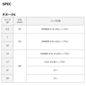 フック仕様:オーナー S-61 #1/0 シングルブラックフック