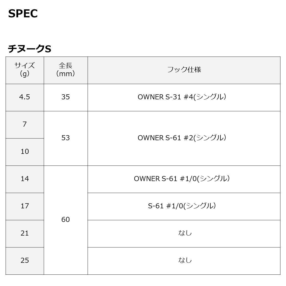 ダイワ(DAIWA) スプーン チヌークS 4.5S/7S/10S/14S/17S/21S/25S 各種
