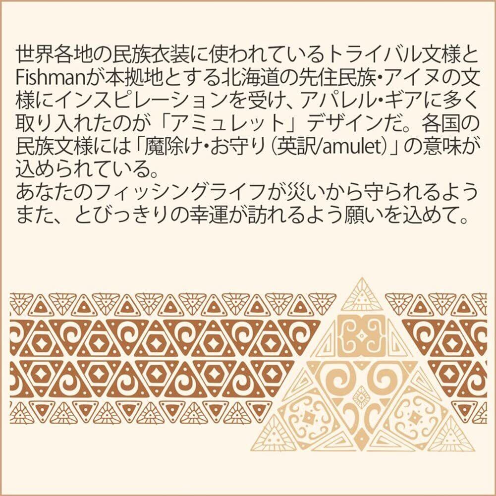 世界各地の民族衣装に使われているトライバル文様と、Fishmanが本拠地とする北海道の先住民族・アイヌの文様にインスピレーションを受け、アパレル・ギアに多く取り入れたのが「アミュレット」デザインだ。