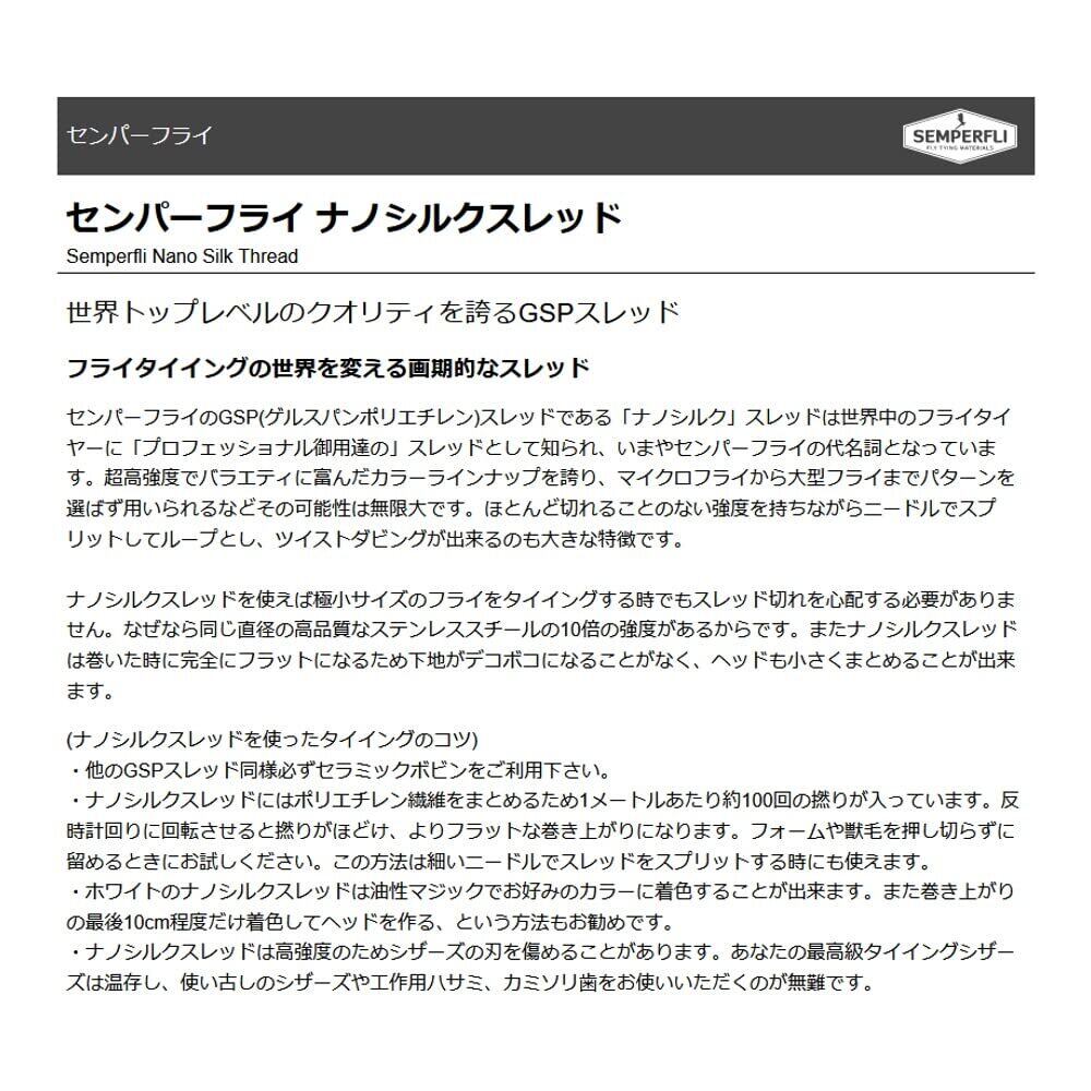 センパーフライのGSP(ゲルスパンポリエチレン)スレッドである「ナノシルク」スレッドは