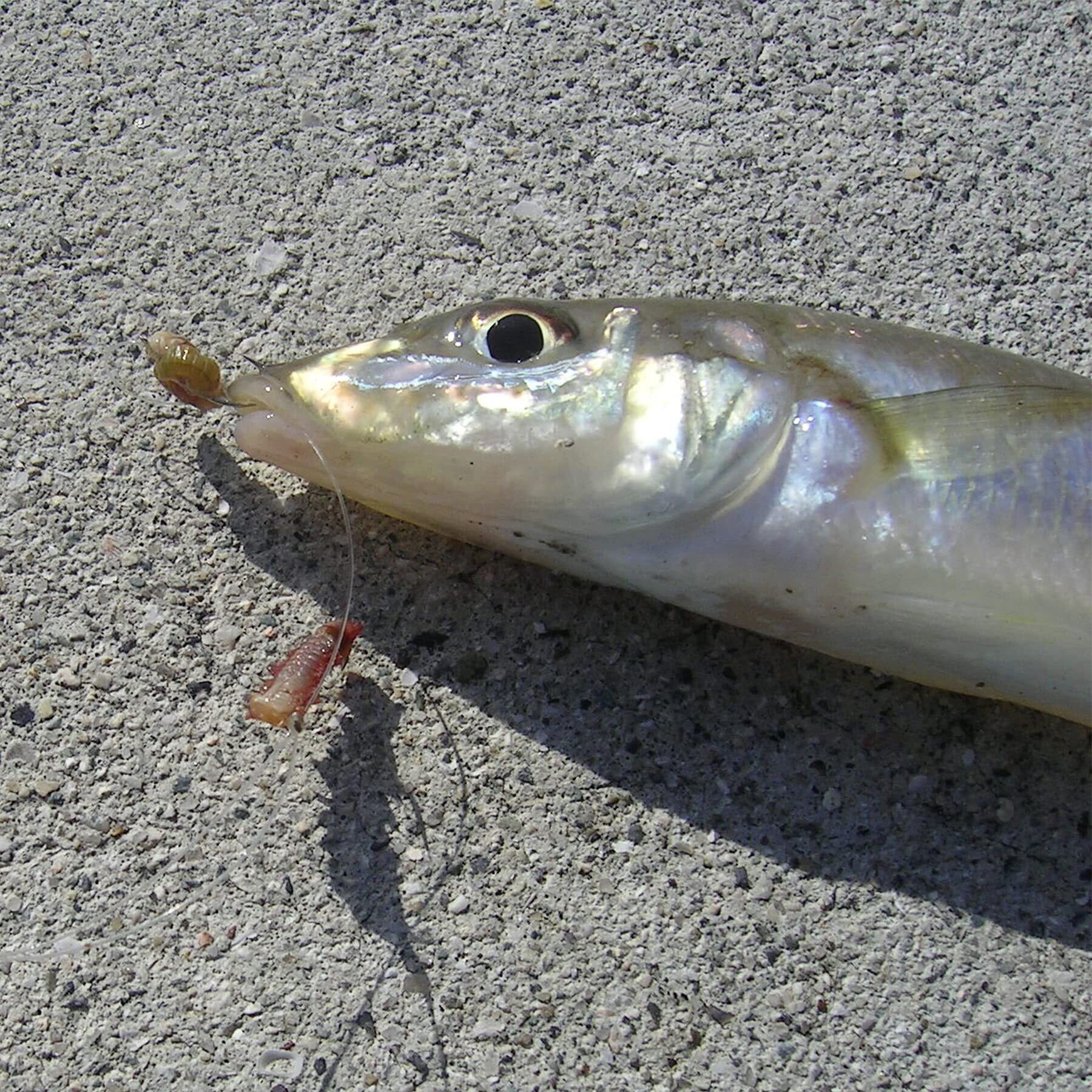海底で立つから仕掛が漂い、底から浮いた大型キスなどが狙える。