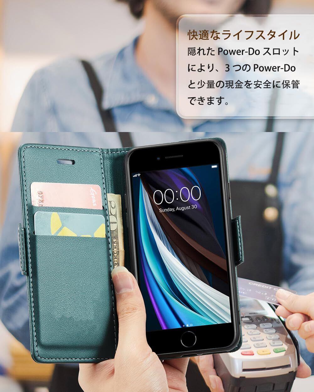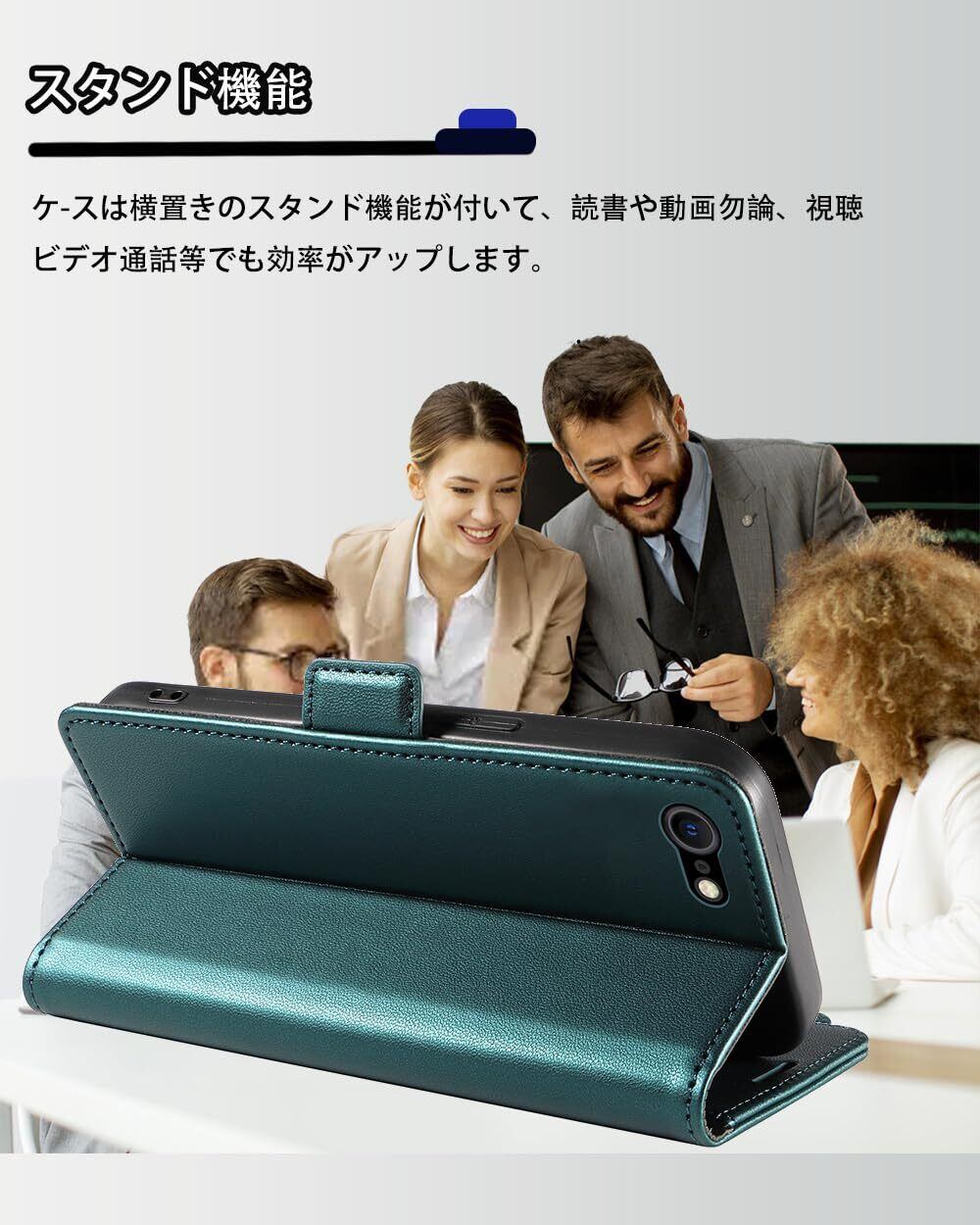 【人気商品】【Junzc】iphone se2 ケース 手帳型 アイホン se3/7/8ケース手帳型 iphone se 第3世代 第2世代 ケース 人気 耐衝撃 落下防止 おしゃれ サイドマグネットワイヤレス充電対応 スタンド機能付 財布型本革高級おしゃれレザー シンプル (グリーン)