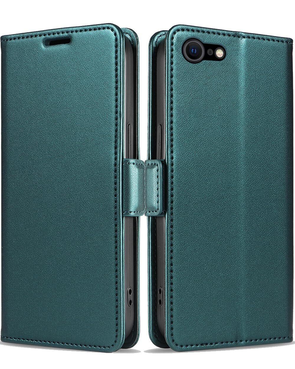 【Junzc】iphone se2 ケース 手帳型 アイホン se3/7/8ケース手帳型 iphone se 第3世代 第2世代 ケース 人気 耐衝撃 落下防止 おしゃれ サイドマグネットワイヤレス充電対応 スタンド機能付 財布型本革高級おしゃれレザー シンプル (グリーン)