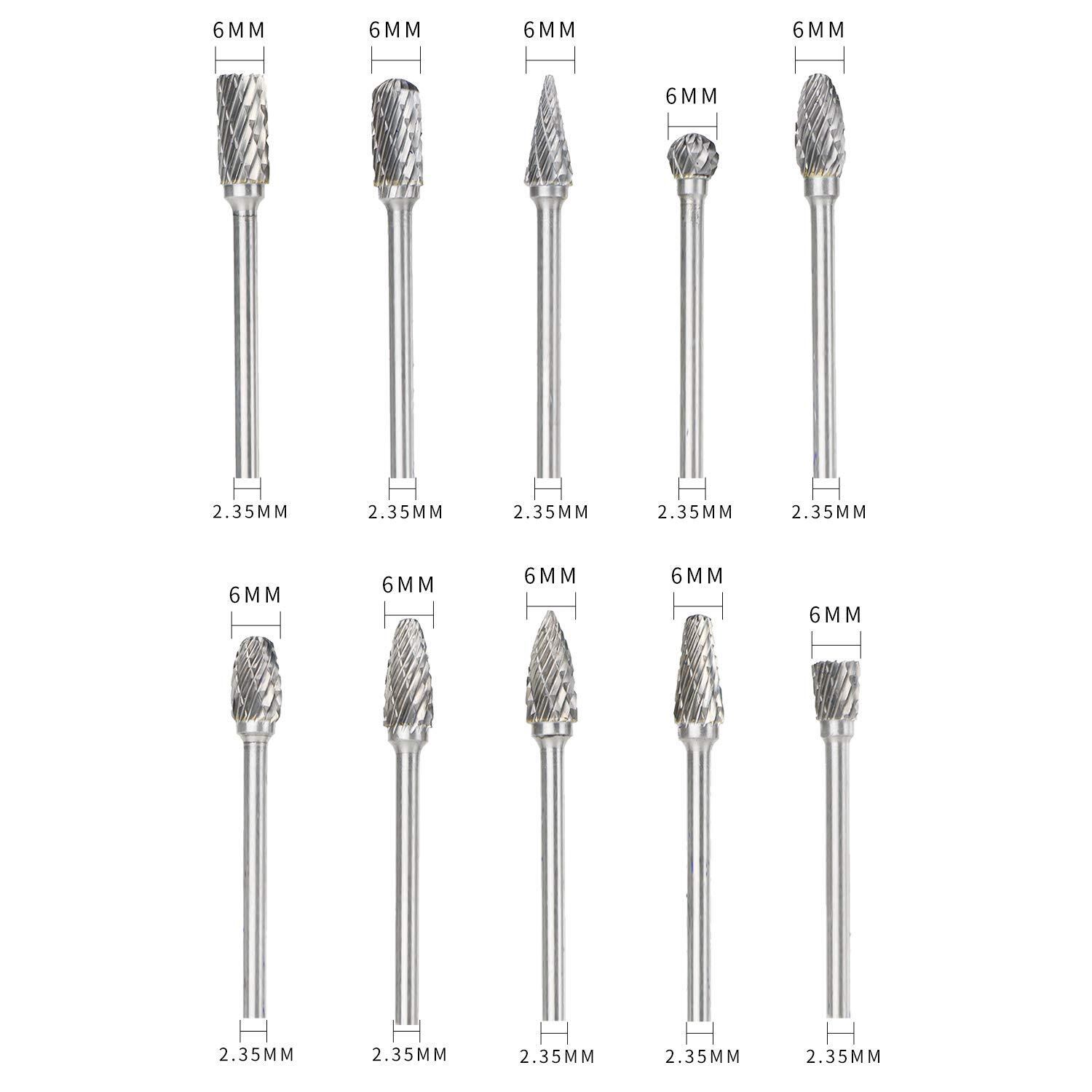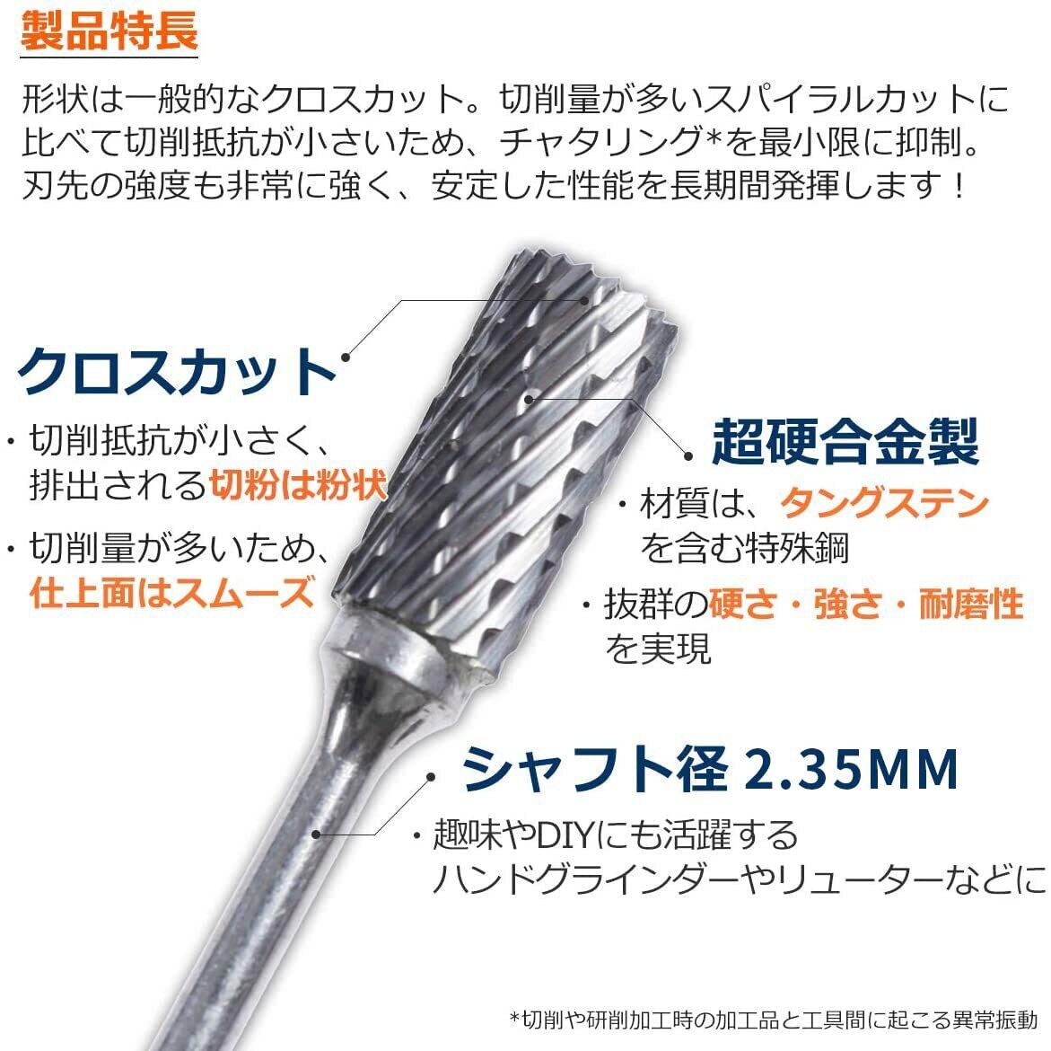 JINTONG リューター ビット ドリル ビット タングステンバー 超硬カッター ルータービット10本セット(2.35mm軸 刃幅6mm)
