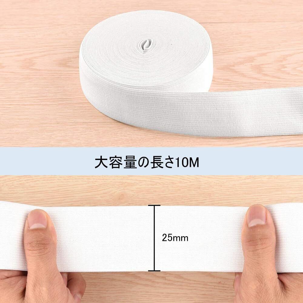 平ゴム 弾性バンド 幅25mm×10m ゴムベルト ズボン用の交換バンド ゴム紐 織ゴム 強い弾性 裁縫材料 DIY 手芸裁縫 (ホワイト)