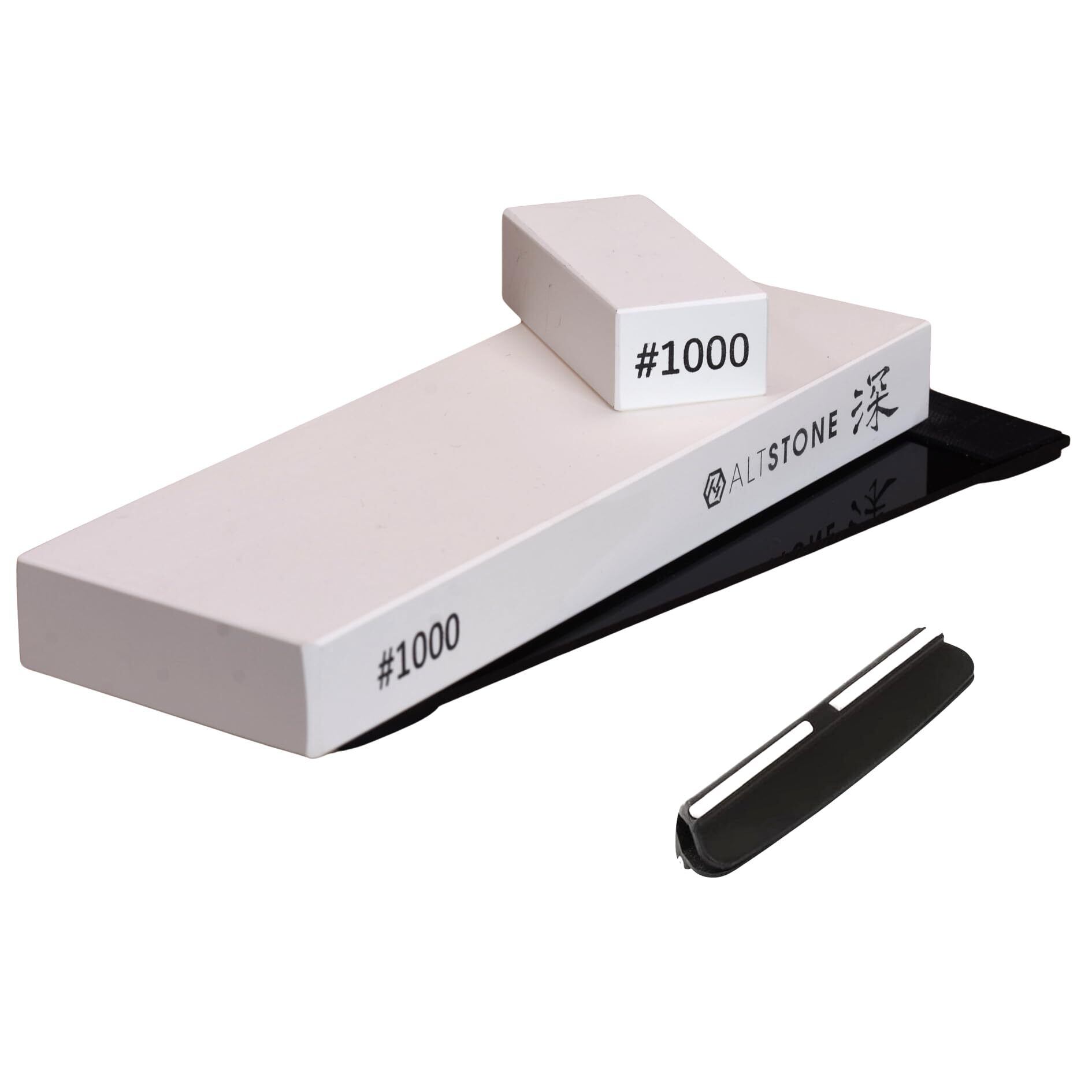 ALTSTONE 砥石 「深 FUKAMI」 【滑かな研ぎ味】 中砥石 1000番 コンパクトサイズ セラミック砥石 [ 名倉砥石 すべり止めマット 角度補助具付き ] 包丁用 日本製 (中砥 #1000 角度補助具付)