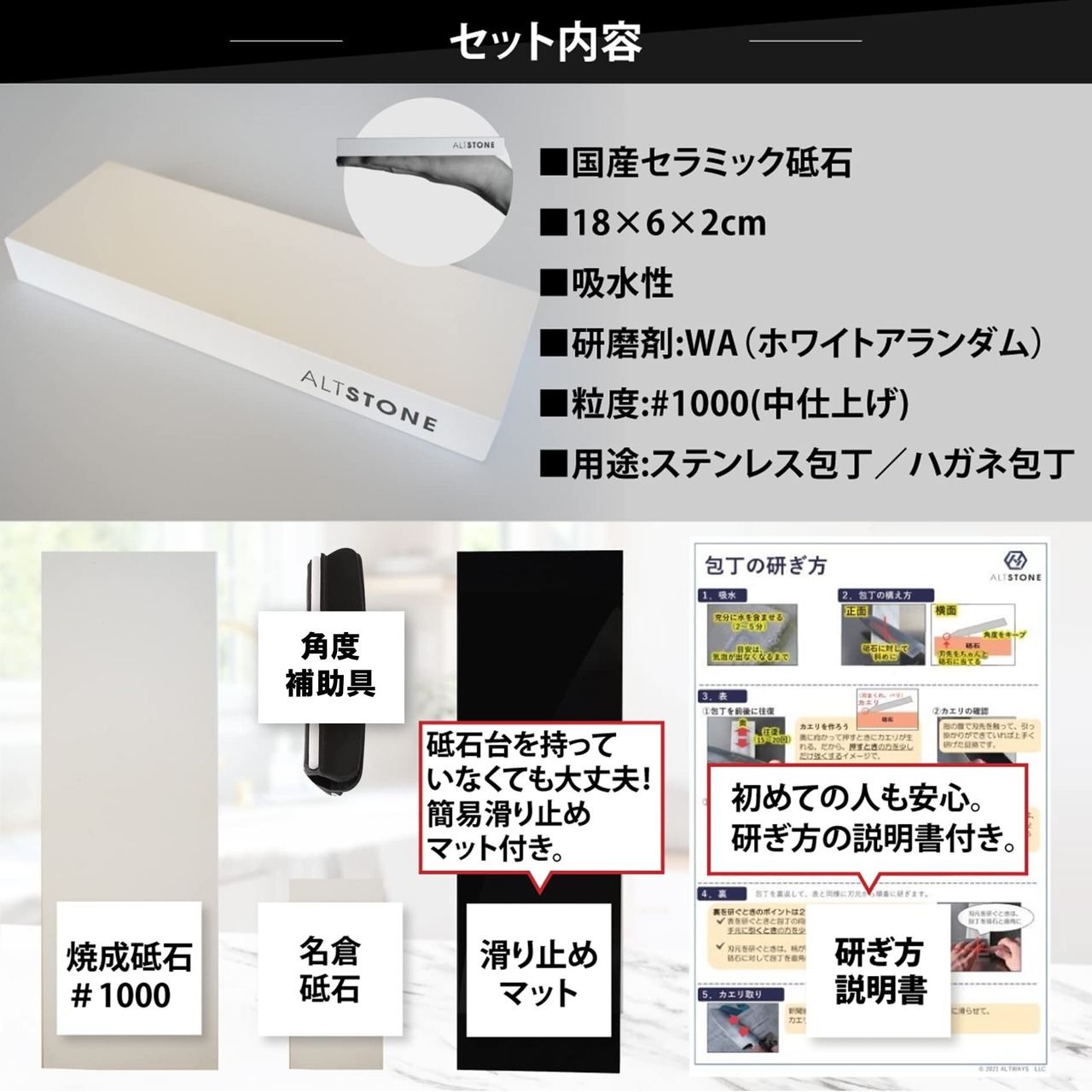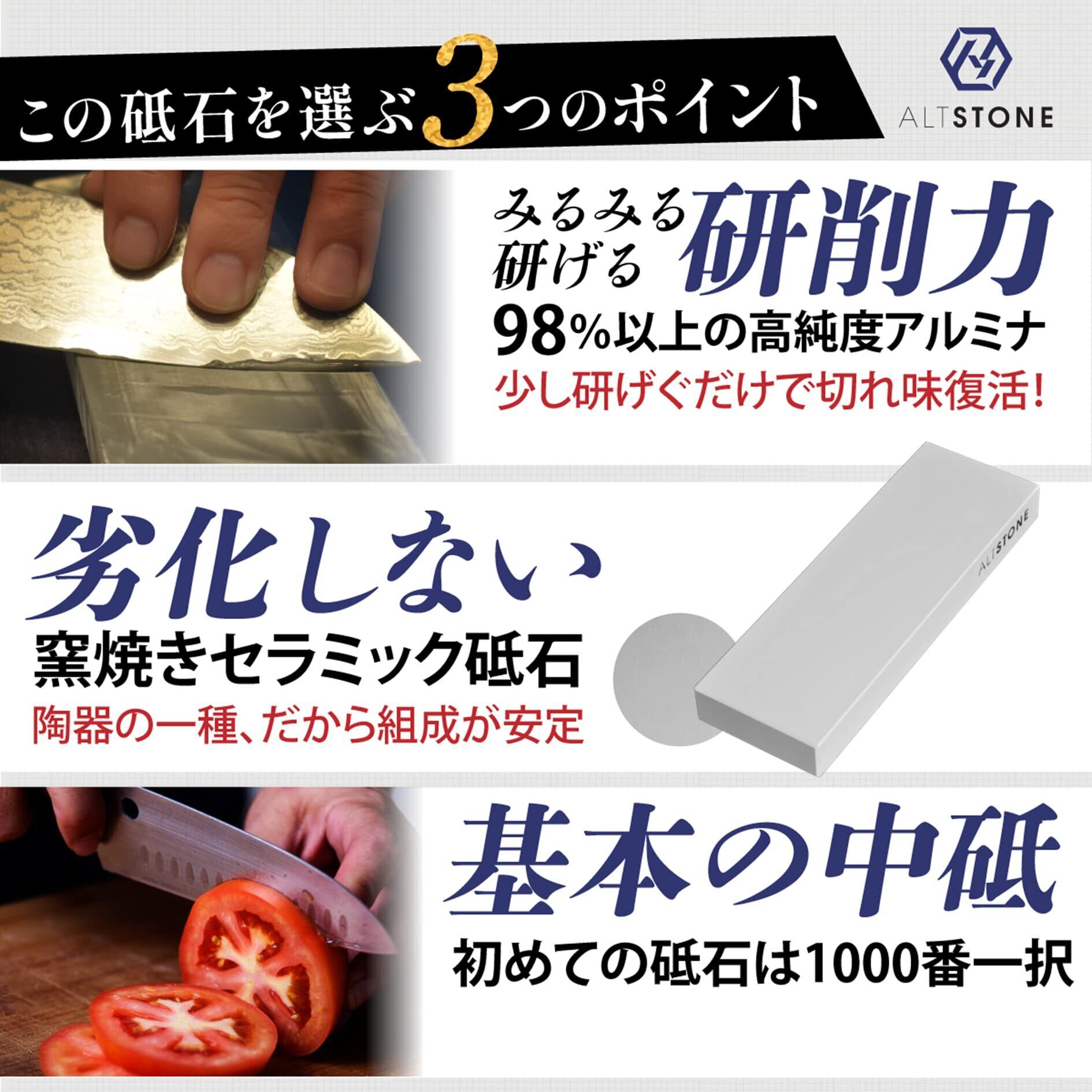 【数量限定】ALTSTONE 砥石 「深 FUKAMI」 【滑かな研ぎ味】 中砥石 1000番 コンパクトサイズ セラミック砥石 [ 名倉砥石 すべり止めマット 角度補助具付き ] 包丁用 日本製 (中砥 #1000 角度補助具付) | ニコニコSHOP