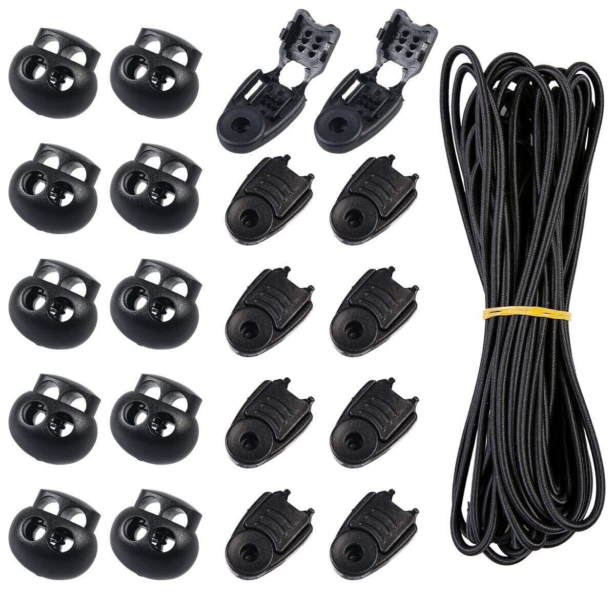 【数量限定】21点セット ゴム紐 スプリングコードストッパー コードエンド コードストッパー アウトドア用ゴム 3.5mm×10m コードロック 紐止め 各 2つ穴 プラスチック パラコード 靴ひもに アウトドア用 | ニコニコSHOP