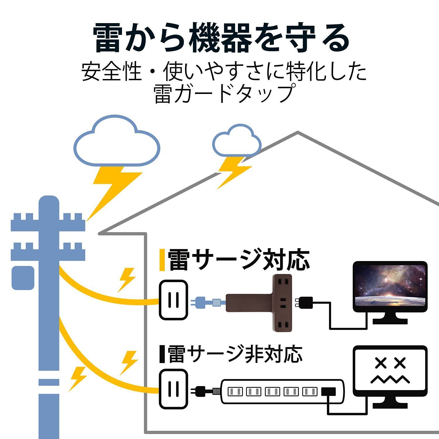 エレコム クリップタップ 雷サージ付 ホコリシャッター付 3個口 2.5m ブラウン T-KF03-2325BR