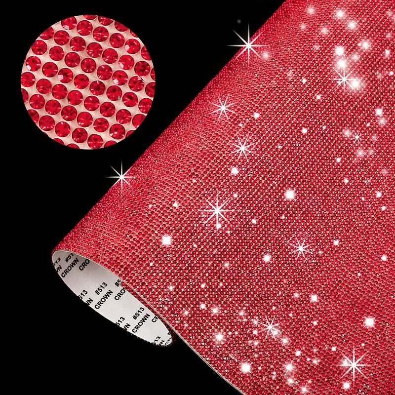 ORBIDO ラインストーン シール [12×20㎝]2枚入り デコシール 自己粘着ラインストーンシール 修正工芸品 電話 衣類 車 スマホ DIY スワロフスキー シール クリスタル キラキラシール 熱接着タイプ ダークレッド