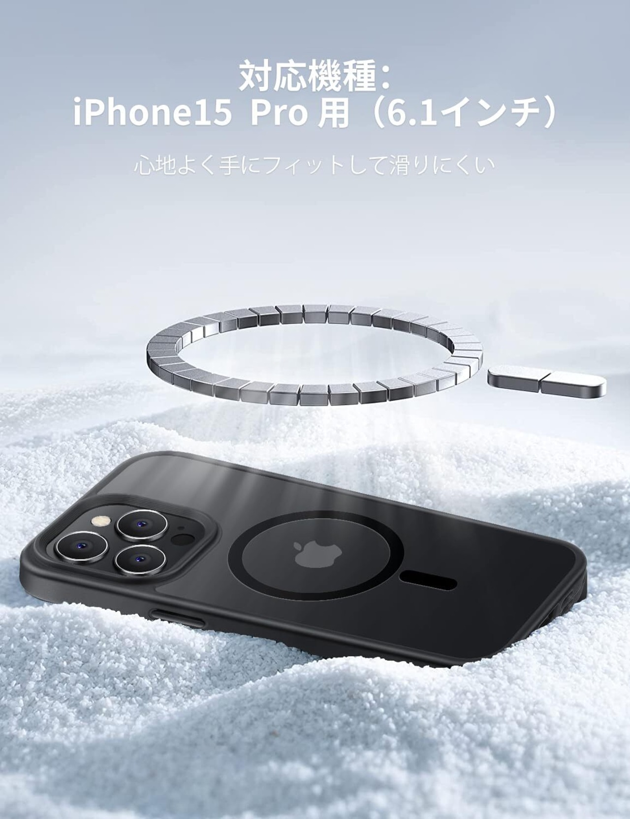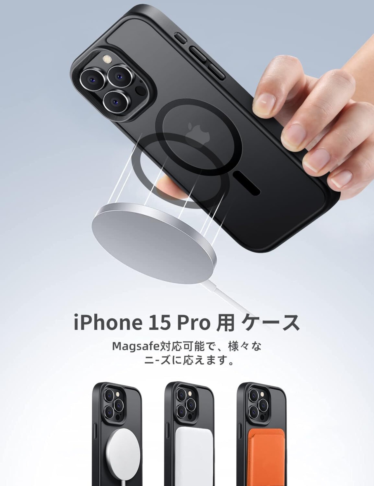 iPhone 15 Pro 用 ケース MagSafe対応 ワイヤレス充電 磁気ケース 耐衝撃性 米軍MIL規格の保護 傷に強い背面 6.1インチ