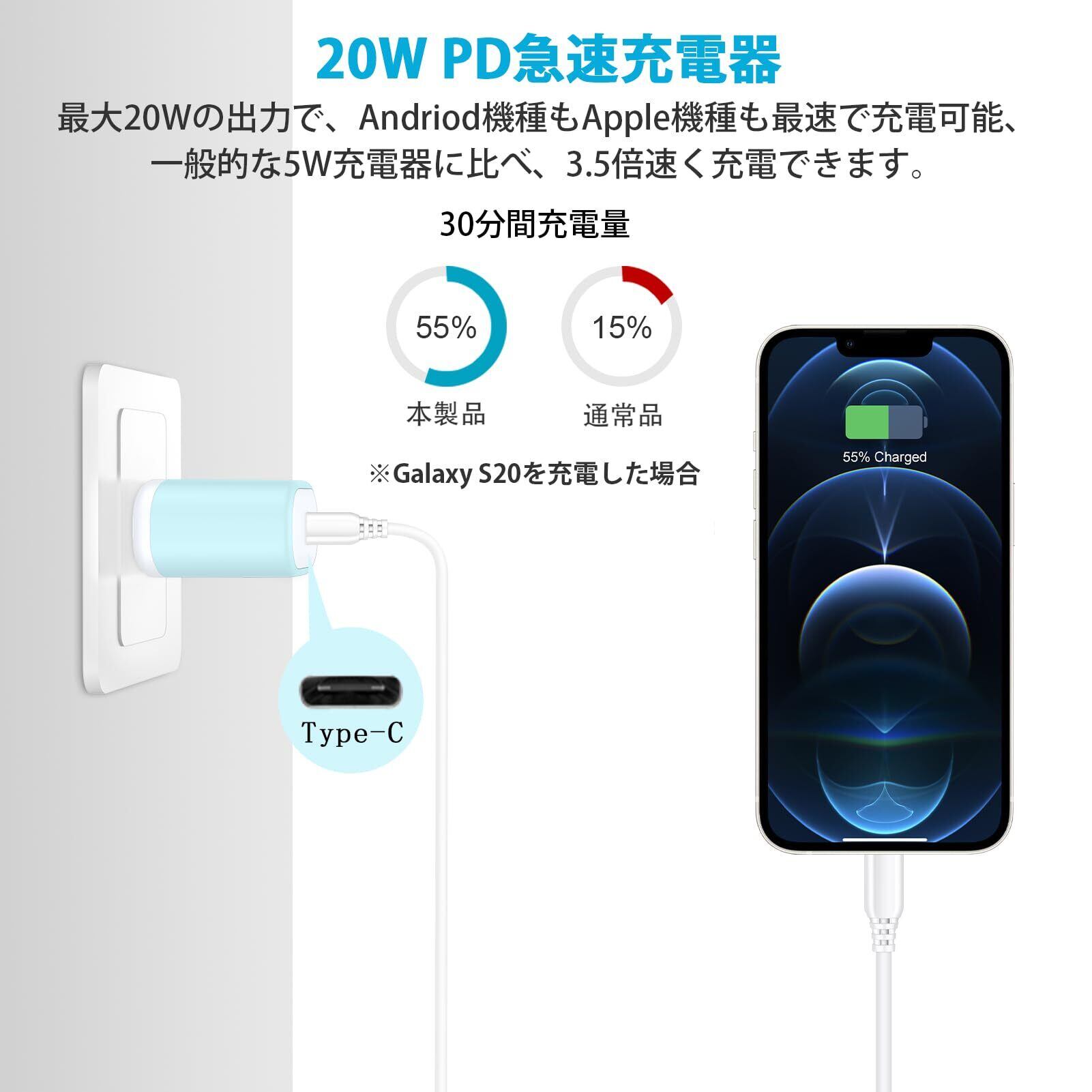 Viviber 急速充電器 Type-C iPhone 充電器 acアダプター タイプc コンセント 純正 20W USB-C電源アダプター (PSE認証/PD3.0/小型) アイフォン充電器 アンドロイド スマホ 充電器 iPhone 15/iPhone 15pro/iPhone 15 pro max /15 Plus iPhone 14/13/12/11 Andriod/iPad 対応