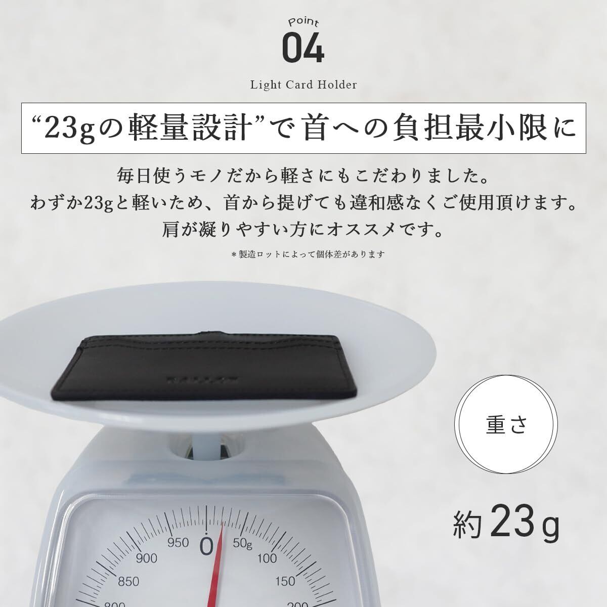 【23gの軽量設計】重さはわずか23gと非常に軽量で、首から提げていてもほとんど負担を感じません。長時間の使用でも肩や首への負担を軽減し、特に肩こりにお悩みの方におすすめです。日々の仕事や移動中に快適な使い心地を提供するデザインです。