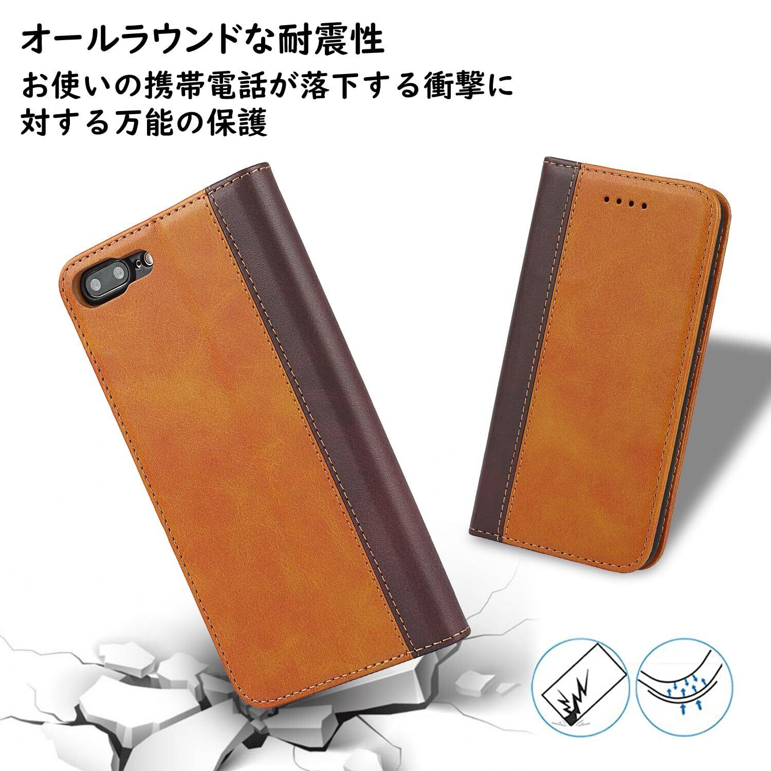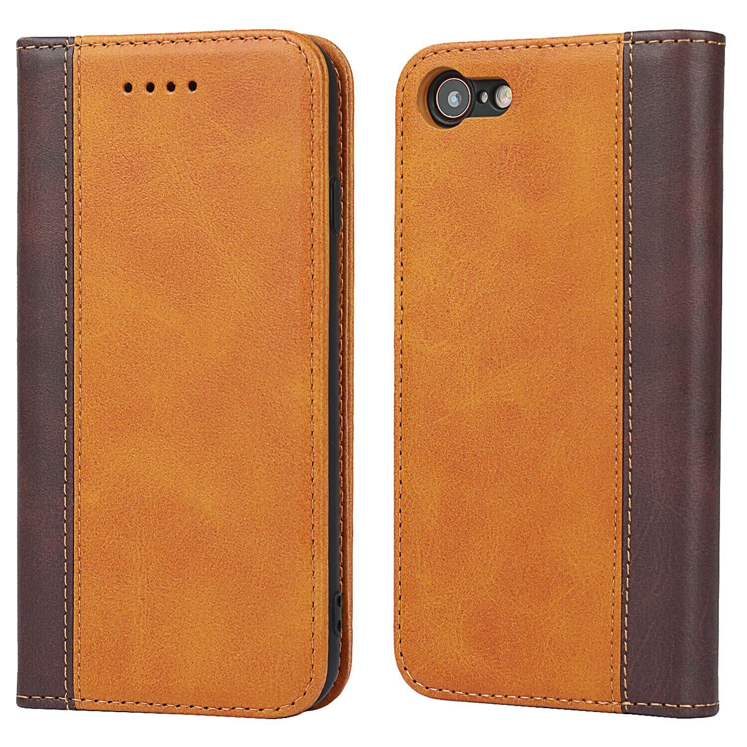 Havaya iPhone8Plus ケース iphone7plus ケース スマホケース 手帳型 耐衝撃 カバー マグネット カード収納(アイフォン7 プラス /あいふぉん8プラス/いphone8plus/アイホン7plus 5.5インチ対応)-イエロー+ブラウン
