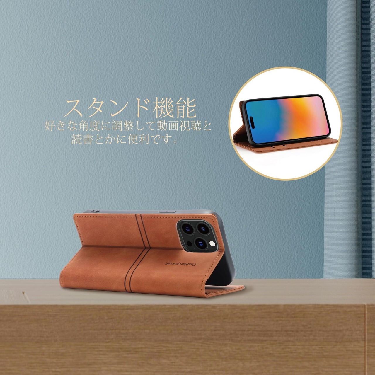 「実用性高いデザイン」落ち着きのあるブラウンiPhone15promaxケースに洗練された手帳型のケースは機能性だけてなくお洒落なファッションアイテムとして、スタイリングのアクセントになる。マルチな使い方でこのあいほんケースの特徴です。スタンドとして使ってゲーム遊びとか、ドラマ視聴とかに楽です。好きな使い方で自由に交換できて、これはあなたの着こなしに合わせられるアイホン15ケースです。